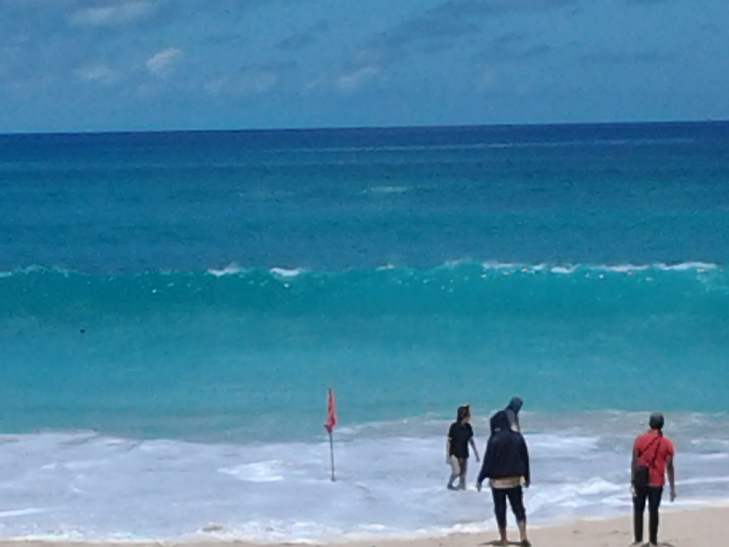 这个沙滩还是比较适合游泳的,海浪不是很大。而且海水很干净,清澈透明。