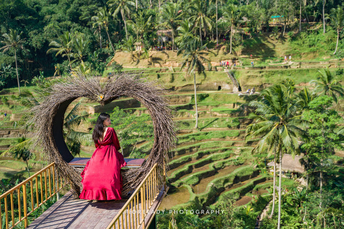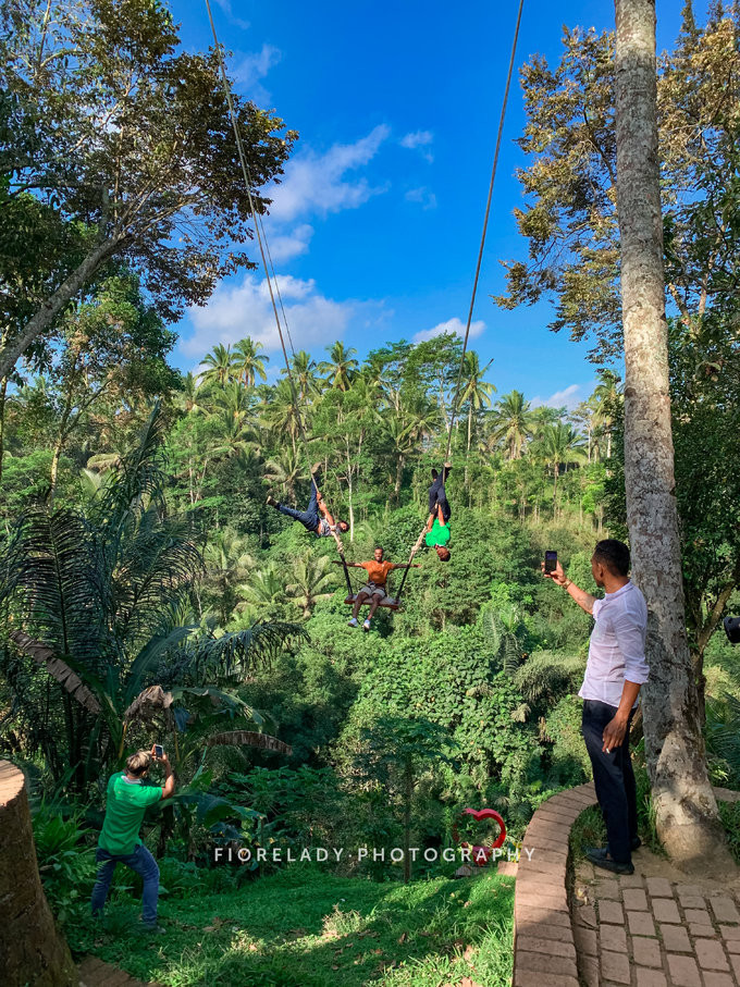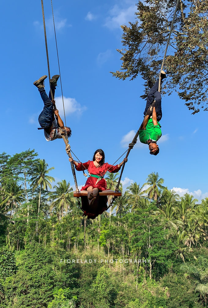 但,千万别再去Bali Swing了,自从被开发称为热门景点,排队的人越来越多且价格还贵,现在去秋千已经不给荡只能摆拍了!这是靠谱的Ketut司机特意告诉我们的,说巴厘岛最好玩的秋千其实就在梯田不远处:Uma Pakel Swing,这个秋千不仅便宜,可以荡得时间长,还有专人帮忙拍照录像,真的是360服务哦!