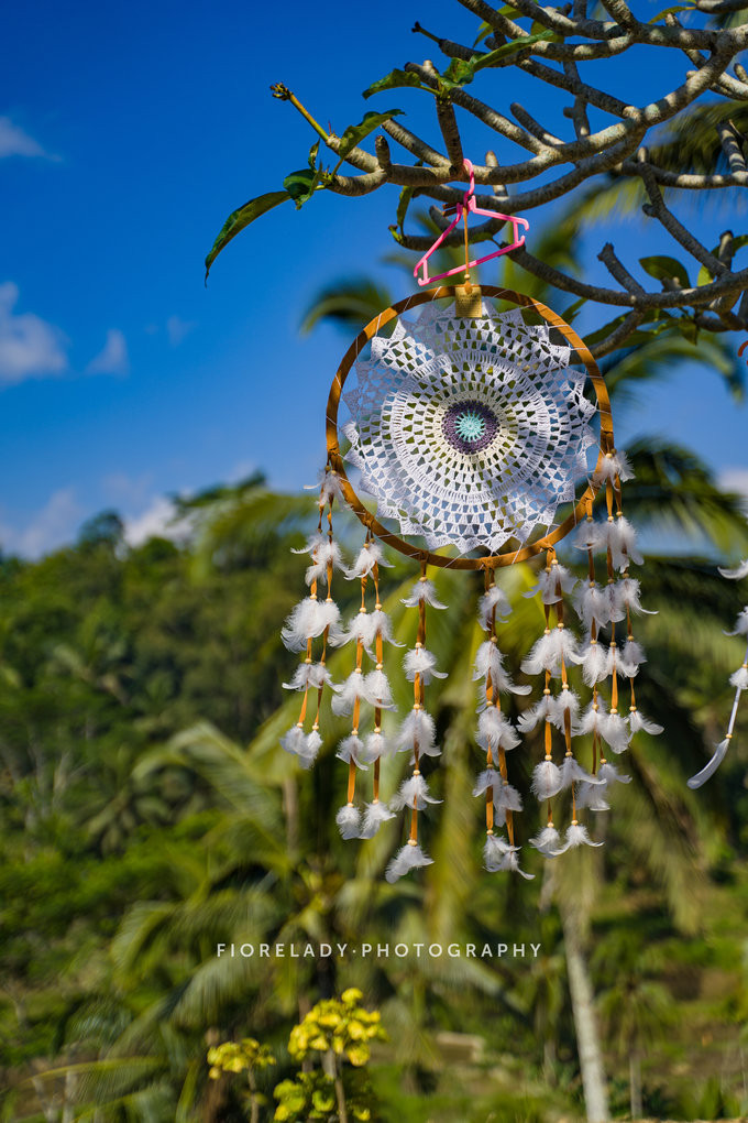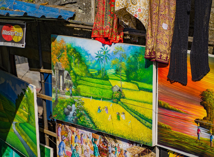 梯田周围的小店里有不少周边产品卖,这些油画、捕梦网如果放在城市的某个角落售卖,可能并不会很起眼,但在乌布的这片梯田中,却变成了稀有的艺术品,耐人寻味!