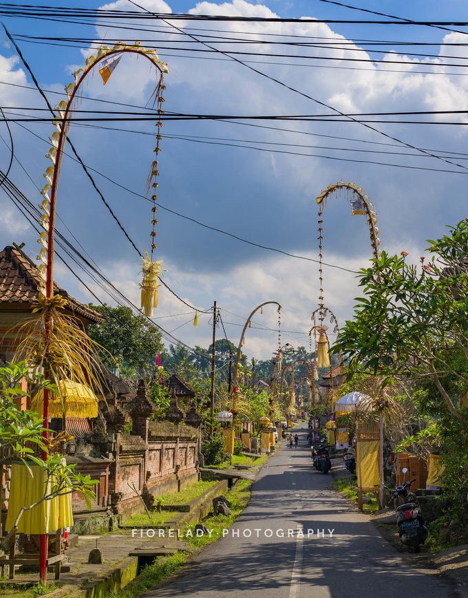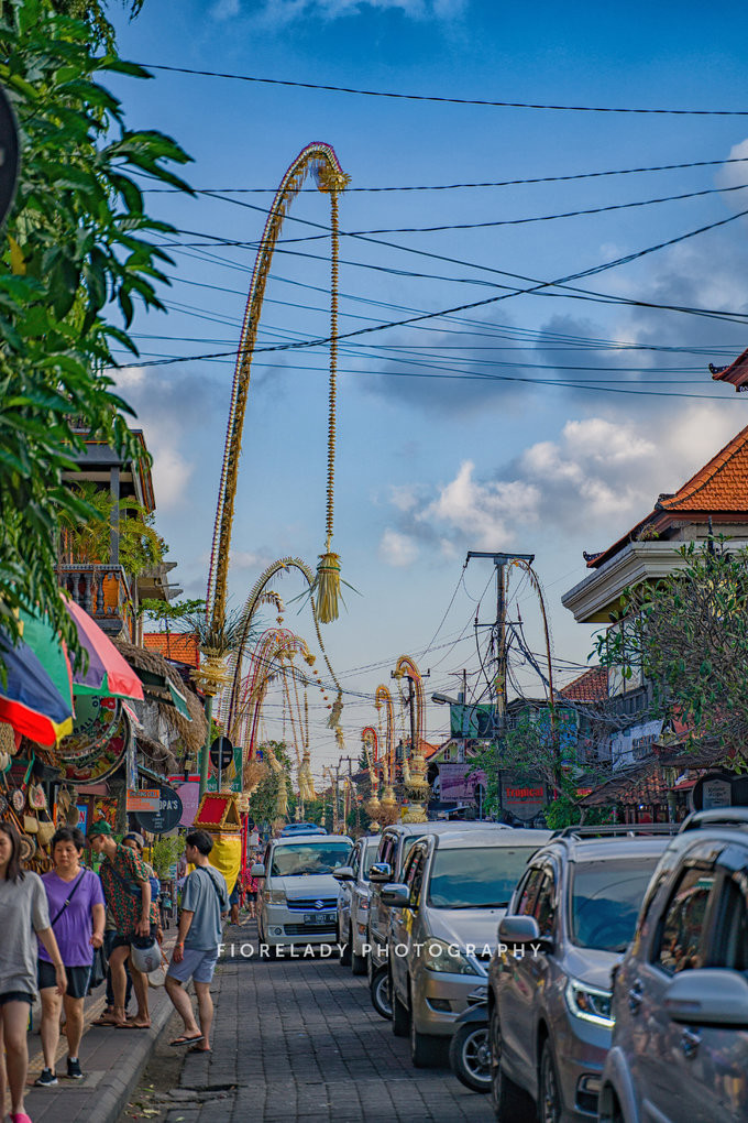 在酒店路口等待司机的时候,发现凌晨路过的街道两旁悬挂着如此多的Penjor(潘焦耳)!原来巴厘岛正在欢度他们一年中的第二个Galungan 加隆安节,在210天的巴厘岛日历里,除了一年一度的Nyepi Day 安宁日,类似我们的春节,巴厘岛最盛大的节日,要数这个一年两次、为期10天的Galungan 加隆安节了!这是巴厘岛印度教的大节日,又称地球节!