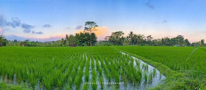 Ketut在日落前把我们送回了Samkhya Villas酒店,坐在酒店派来的Golf小车上,沿途欣赏着小径两旁的稻田美景,脑海浮现处“稻花香里说丰年,听取蛙声一片”的画面!感慨乌布是个神奇的地方,白天还在山洞里看瀑布荡秋千,远眺火山,傍晚便跳进了田间一片祥和安逸的时光里,回味着,期盼着......