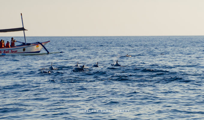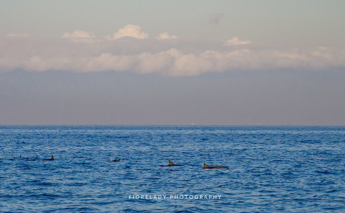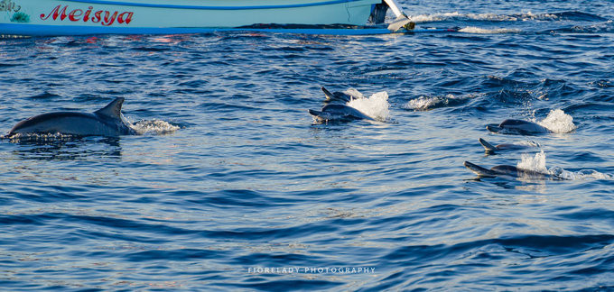 就在此时,只见船夫往10点的方向猛的加速前进,还没等后面的蜘蛛船靠近,一群灰色的小精灵已经从我们船的左侧露出了滑溜溜的小脑袋,几秒钟的时候又沉入大海中......这是我们与海豚的第一次相遇!