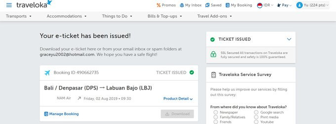 在查找印尼内部航空预定攻略的时候,发现这了网站Traveloka,价格上比官网便宜一点,看了网上不少驴友都有在这个网站上预定过,于是便放心的去拍了!