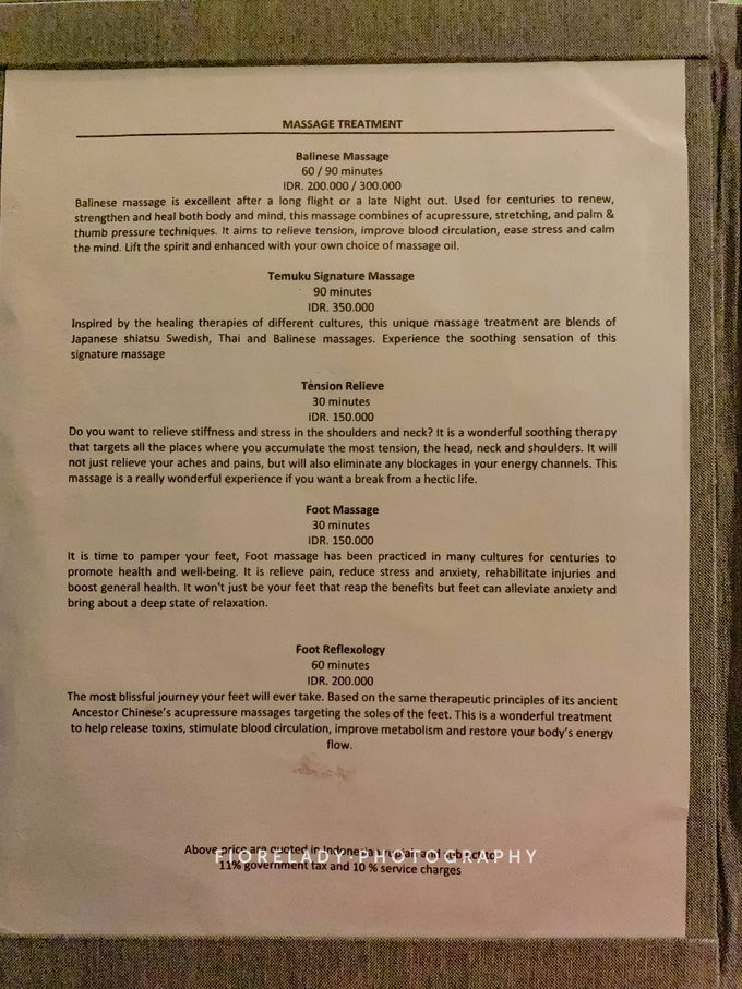 酒店还有免费的下午茶和SAP服务,因为我们白天都在外面玩,下午茶完美的错过,不过还是享受到了他们15-30分钟免费的SPA,舒服啊!