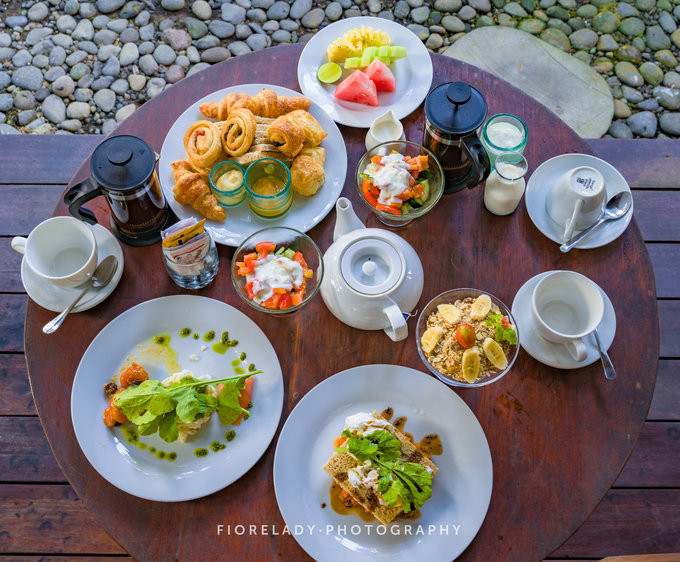 Samkhya Villas的早餐非常丰盛,前一天前台会询问选什么套餐,几点送到客房里,接着第二天一大桌美味便准时出现在你的庭院里
