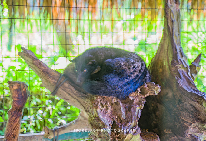 这个主打秋千的游乐园里,还有另外一个小惊喜,就是它:印尼大名鼎鼎的麝香猫 Luwak,从这只猫吃下成熟咖啡果实后排出的粪便中,提取加工的咖啡,每磅的价格可以卖到几百美元,是世界上最贵的咖啡之一!在巴厘岛,一杯猫屎咖啡要300,000rp多,相当于150rmb多哦!