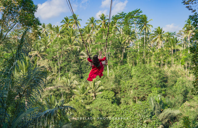 小贴士:来巴厘岛荡秋千,女生记得一定要带一条飘逸的长裙,与绿色的丛林形成对比的颜色就行,怎么靓丽怎么来!如果你没带也不要紧,秋千旁边就有组长裙的,全部是靓丽色,还挺漂亮的!