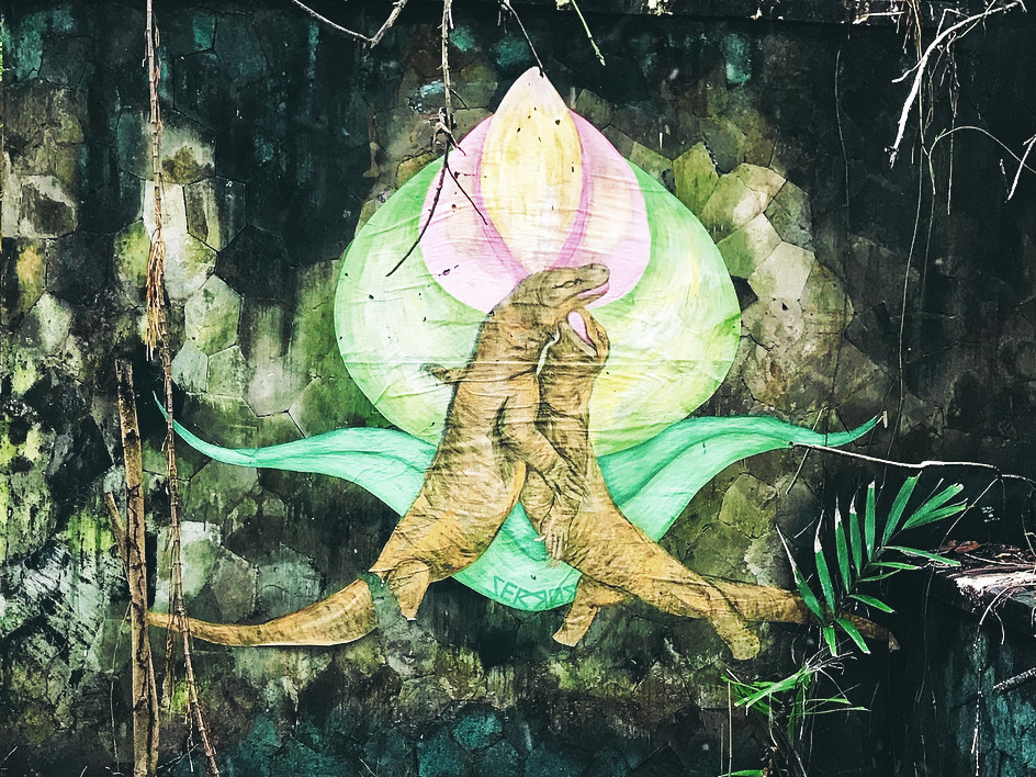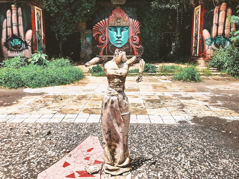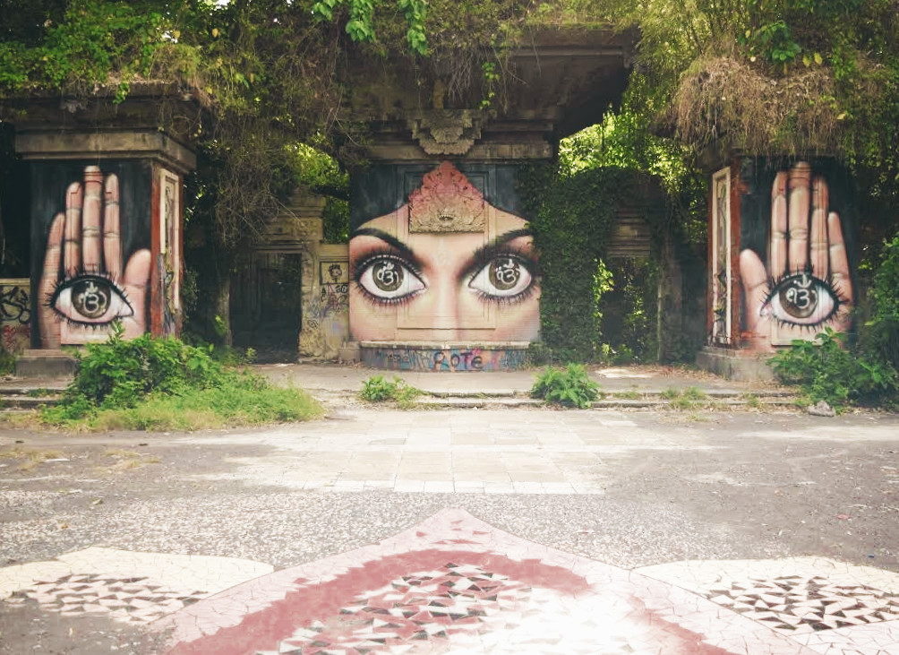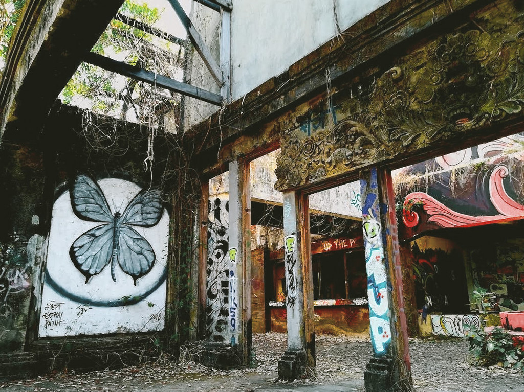 ?如今的这里,之所以成为巴厘岛年轻人最爱的拍照打卡地,除了为了证明自己的勇气和冒险精神外,更是因为这里的残垣断壁上布满了来自当地和世界著名的艺术家们(ROA/SETH/SOFLES等)留下的大大小小成百上千幅涂鸦作品。不仅如此,本地的复古改装摩托车爱好者们也会不定期来这里集会,展出改装过的摩托车。尽管这里仍然会有一种让人毛骨悚然的气氛,但显然已经成为了涂鸦和街头艺术的天堂,吸引了众多涂鸦艺术家,摄影师和城市探险家一探究竟。