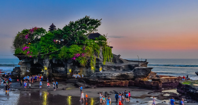 位于巴厘岛的西海岸,在水明漾的北部,海神庙是巴厘岛最重要的海边庙宇。为了祭祀海神始建于16世纪。海神庙被当地巴厘印度教尊为圣地。与印尼其他地方的宗教信仰不同,巴厘岛因历史上受印度文化宗教的影响,居民大都信奉印度教,是印尼唯一信仰印度教的地方。但这里的印度教与印度本土的印度教不大相同,是印度教的教义和巴厘岛风俗习惯的结合,称为巴厘印度教。