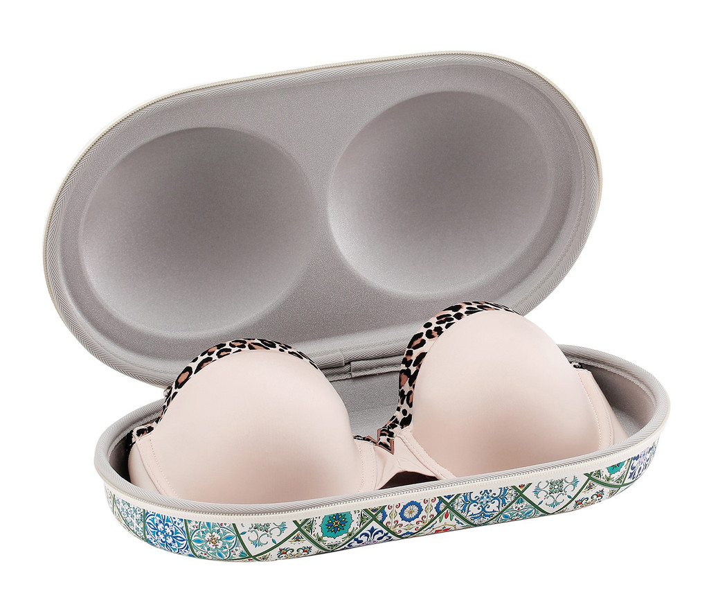 超大尺寸设计,可以收纳A杯至DD杯的文胸。厚杯可放2-3件,薄杯可放3-5件,可以放置在行李箱,方便随身携带。女神私密物件如文胸、内衣内裤、丝袜、珠宝首饰及化妆品等都可以得到很好的保护哦,适合旅行出差、居家收纳等场景,是您贴心的伙伴。女神贴身衣物不将就,健康舒适有讲究!