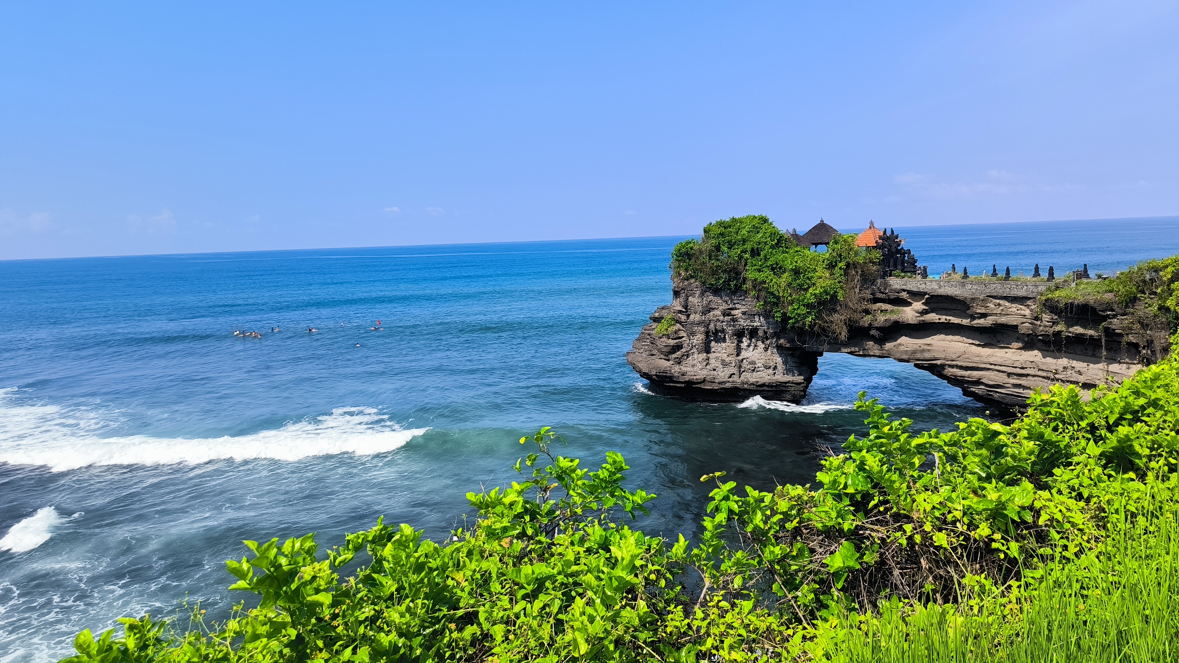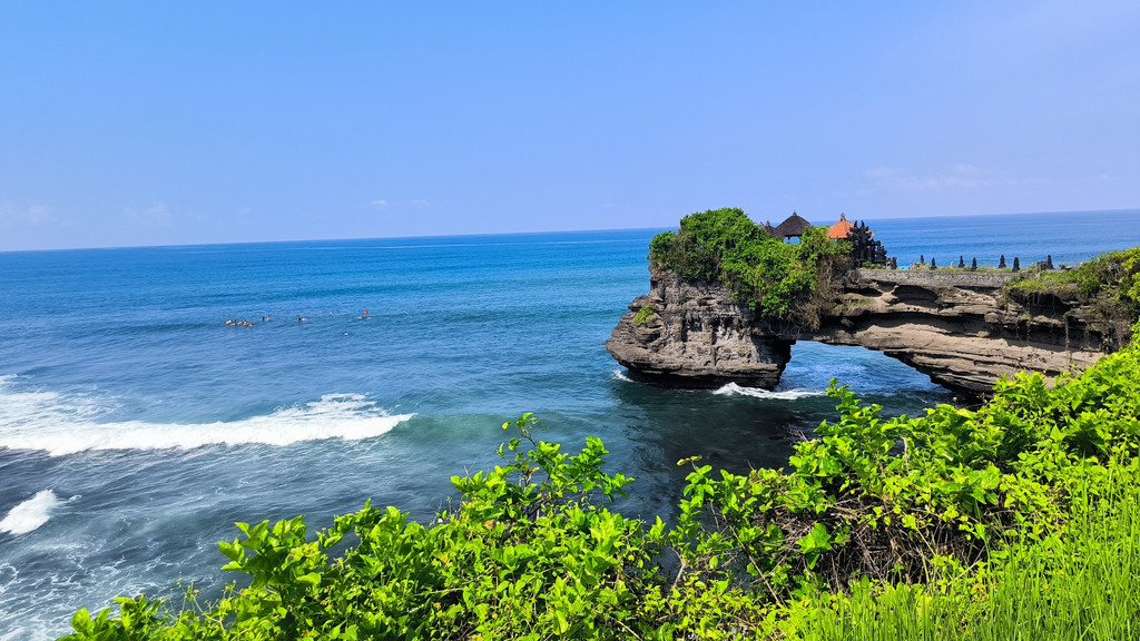 乌布是堵车严重的城市,听从导游的建议8:30就从酒店出发了,事实证明非常正确,1.5H就到了海神庙,上午还不是很晒,可以提走走逛逛,海神庙的景色非常不错,欧美人都在海里冲浪,不知道怎么去的。