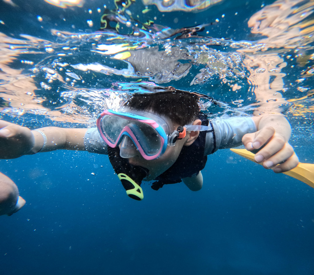 我们被卖到一艘讲英语的船上,大约20人,四个浮潜店,也没人教你,到了点叫你下去,比较混轮,一开始大家都不会,下水有比较集中,船边上扒着一群人,教练下水只是为了帮你拍照,其实不太管你,有些小失望。