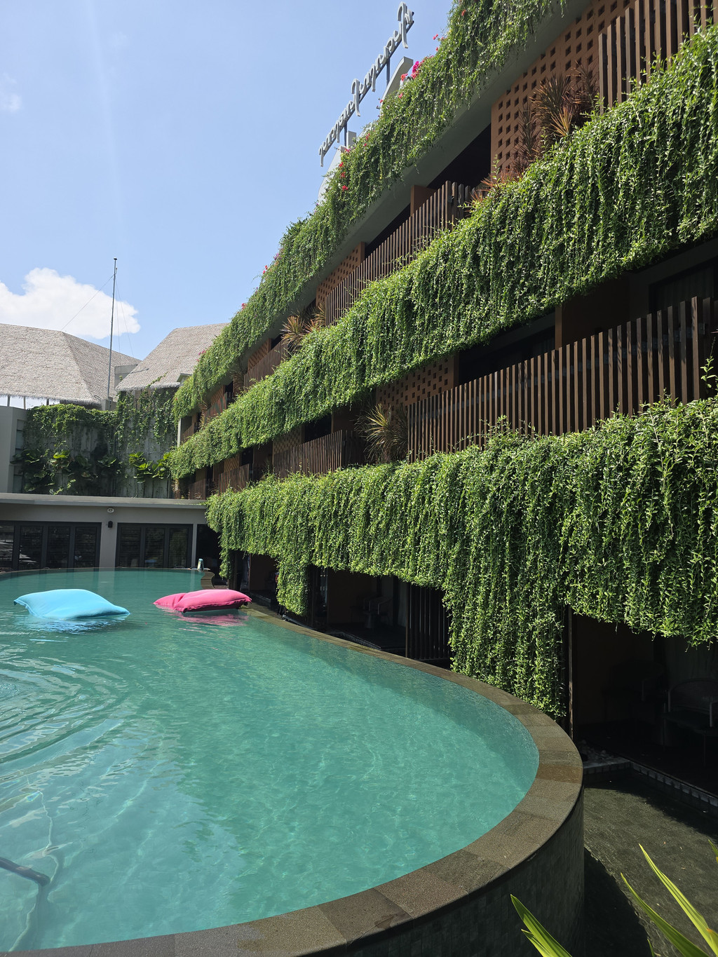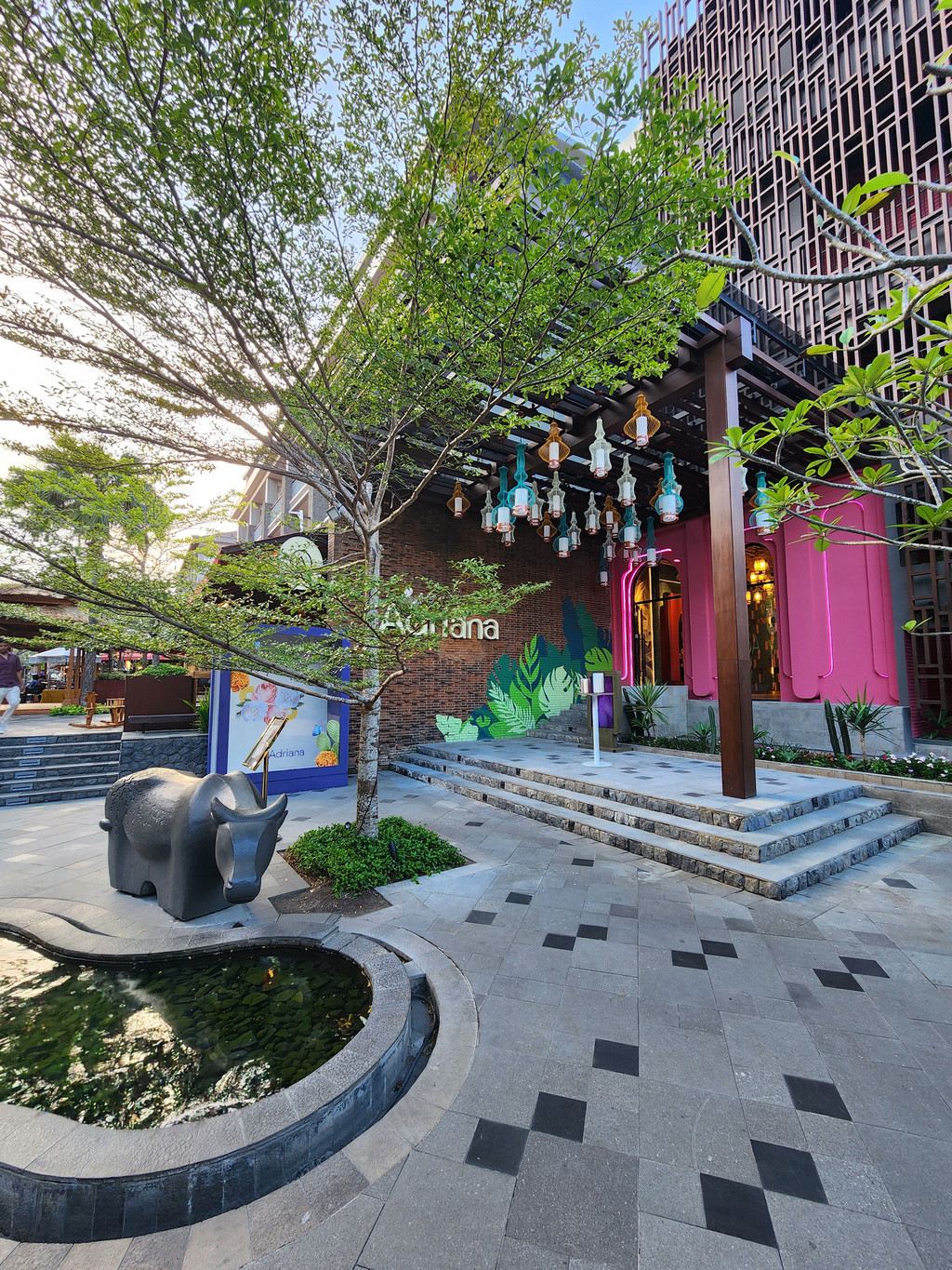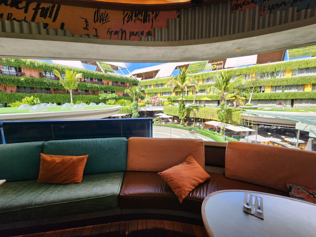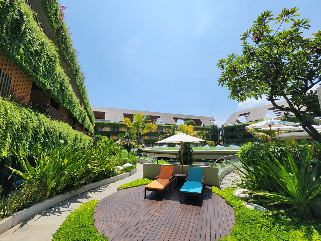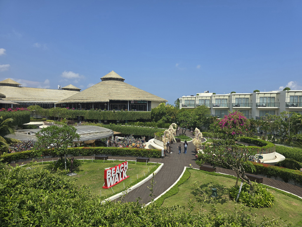 酒店位于Beachwalk Shopping Center内,步行进出酒店要依赖购物中心的出入口。购物中心采用开放式的设计,只有部分位置有冷气,但是位于海边,通风良好。三层高的商场围绕着中间的水池和架空的花园,有大量的国际品牌和连锁品牌餐厅。可能因为外面就是库塔沙滩Pantai Kuta,所以这个购物中心还是有一定的人流,特别是餐厅,有特色的餐厅还是有不少食客。