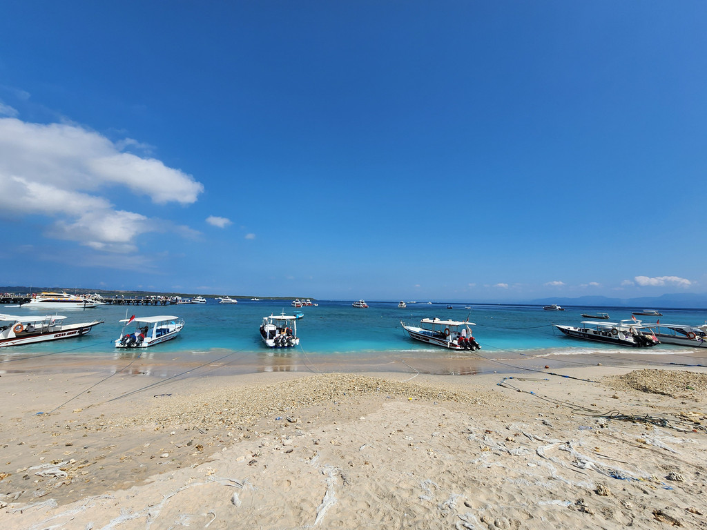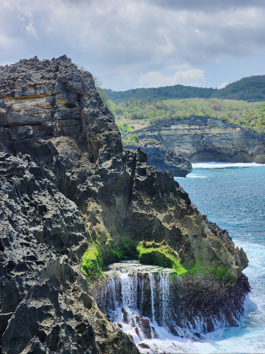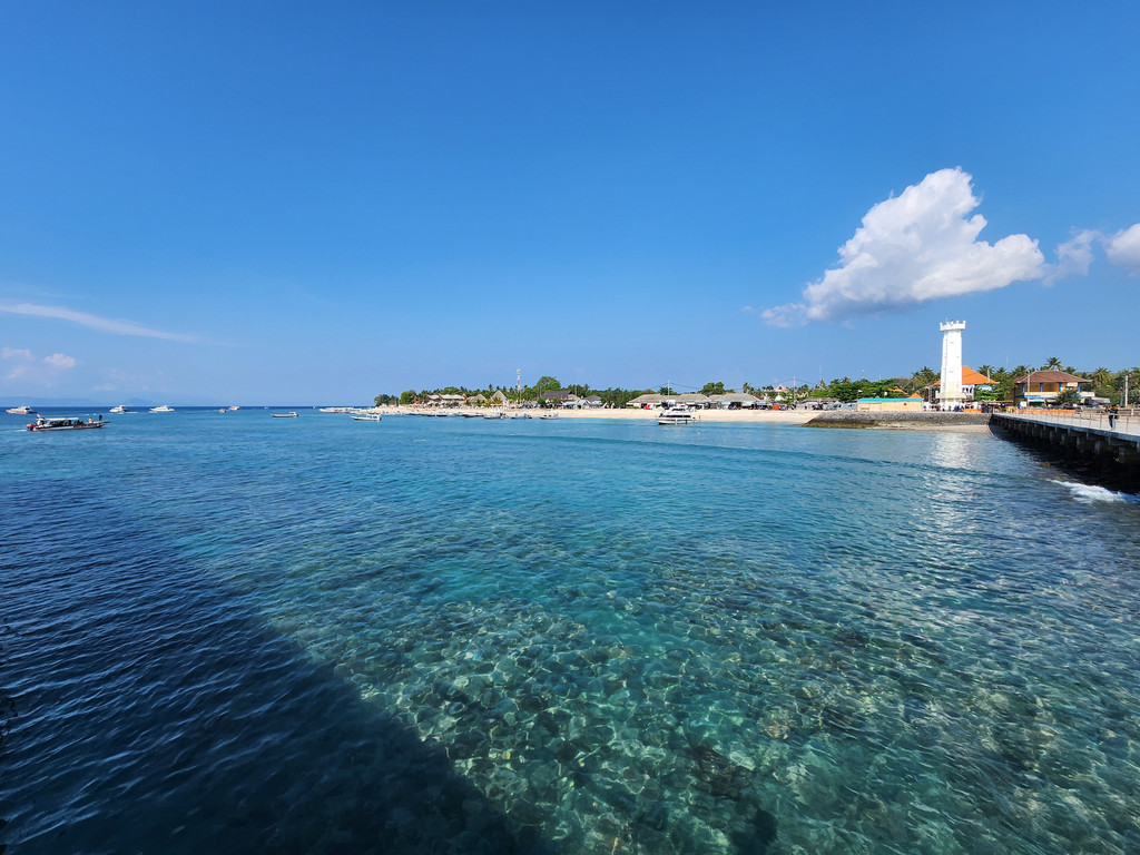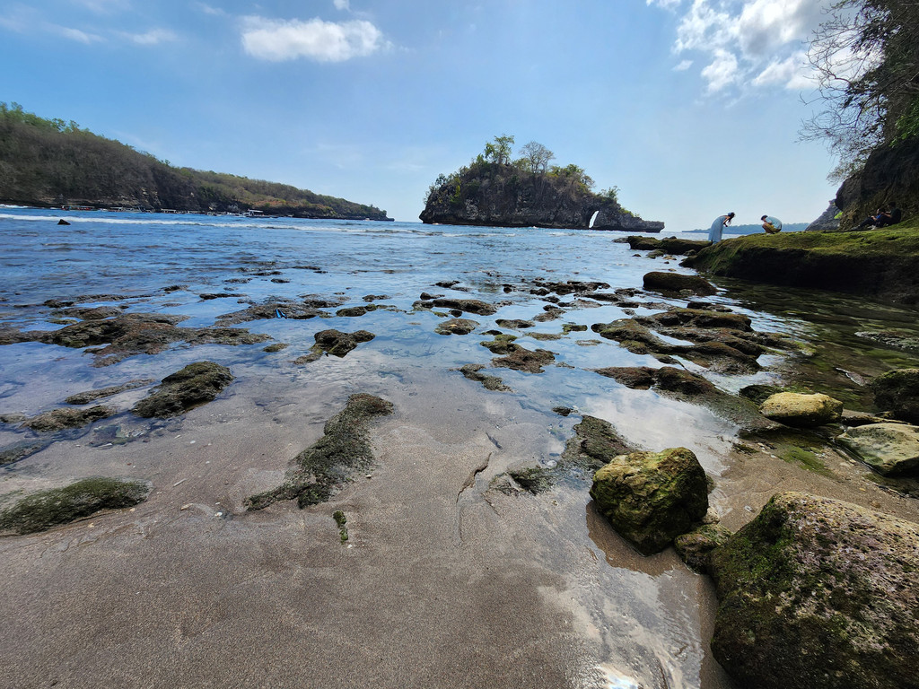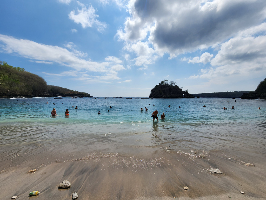 Crystal Bay,是岛上少有的车行可达沙滩,所以聚集了最多的游人,沙滩依旧是混杂了一些黑灰色,但是相对水质中的泥土成份会比巴厘岛的沙滩少,所以水质整体会清澈一些,特别是在游客罕至的角落,水在阳光照射下,几近透明。不过这里应该也是目前岛上最受人类活动影响的沙滩,这种影响对于自然之境为主要卖点的珀尼达岛其实是不可逆的。