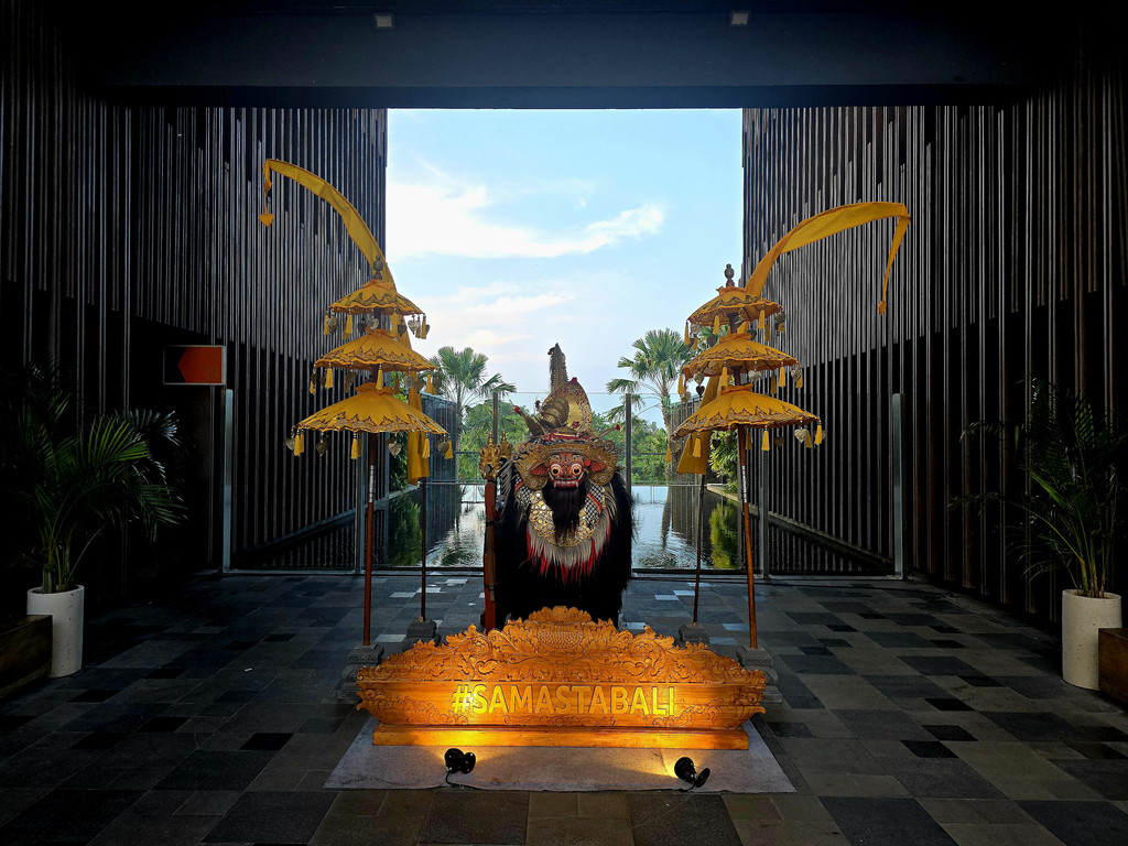 度假村里面有一座早年已经建立的寺庙,在度假村建设过程中得以保留,还有专人每天维护。每周有几天会开放给度假村的住客,藉此了解一些巴厘岛独有的特别宗教知识。通过介绍,才留意到巴厘岛是印度尼西亚唯一一个以巴厘岛印度教为主要信仰的地区,这在一个伊斯兰教国家是独特的存在,而巴厘岛印度教又因为受到各种文化的影响,成就了一个异于南亚次大陆印度教的独特存在。仅仅是寺庙的形态就已经和一般的印度教寺庙大为不同,正因为这种特别的形态布局,才有了网红的“天空之门”。而巴厘岛宗教的各种活动都很讲求平衡,宇宙,地球,生命,心灵,一切都是平衡。