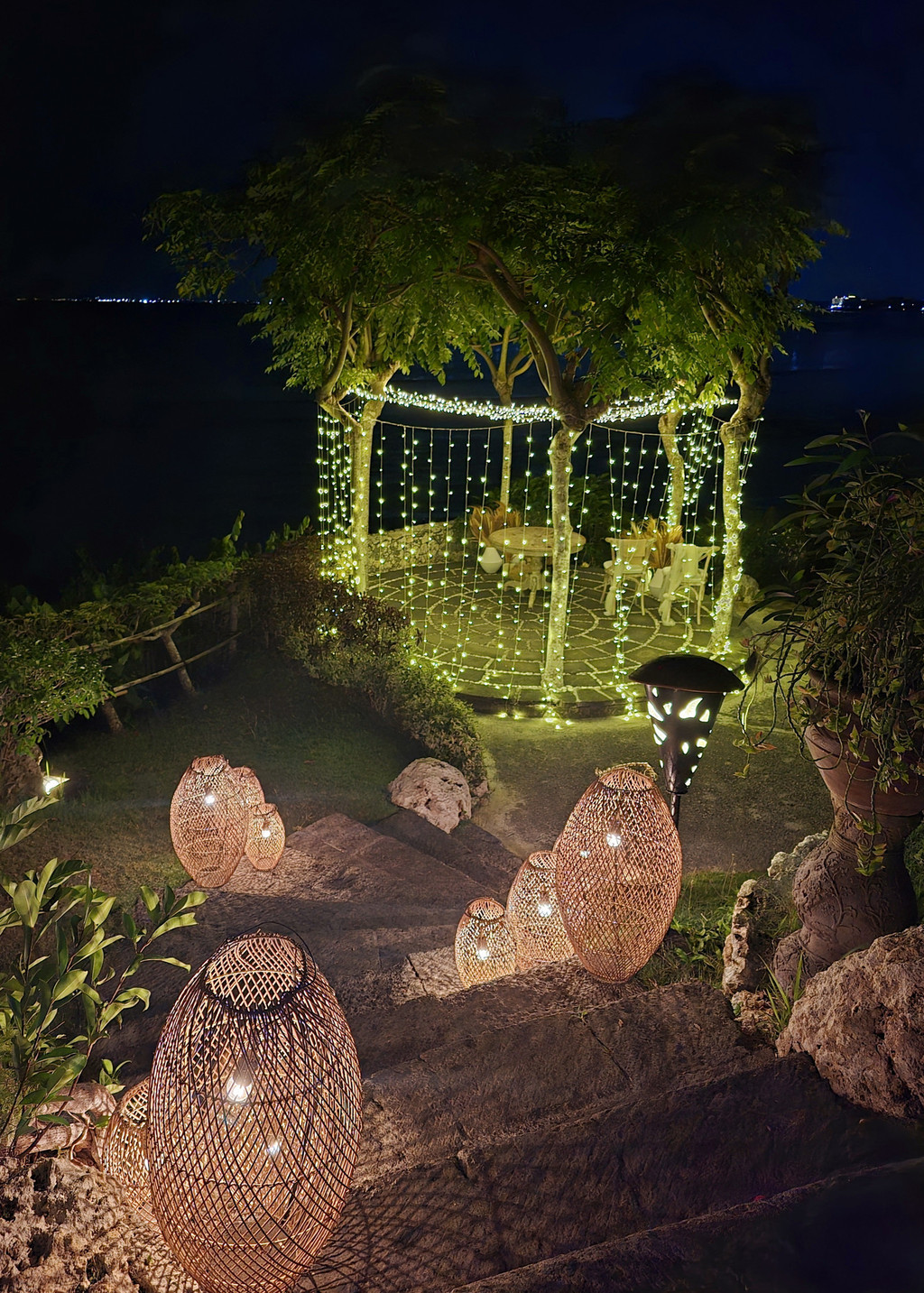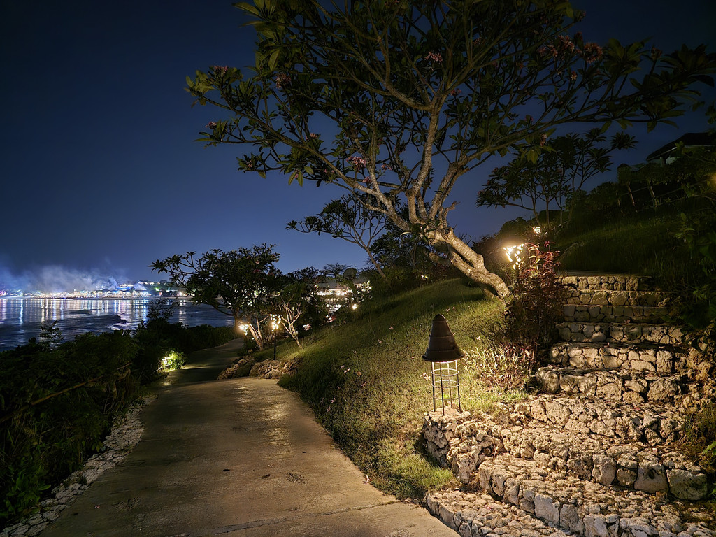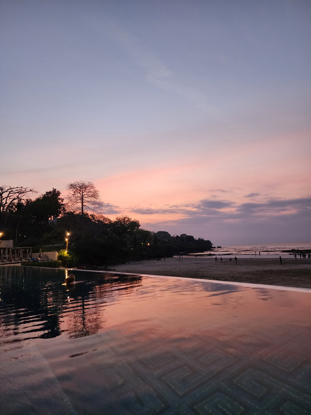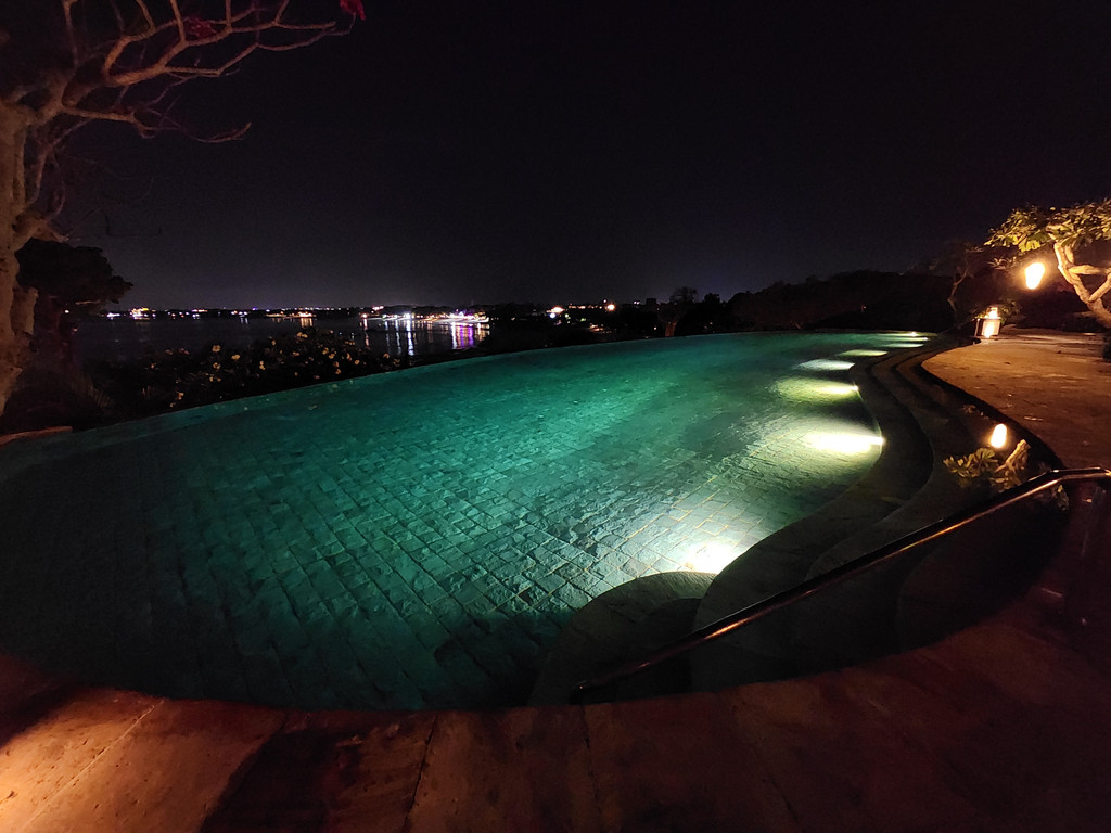 晚餐后我们在无边泳池边继续闲坐,职员会不时送上冰水,吹着海风,听着海浪,吹着水,即便面对的漆黑的海,时间流逝便是飞快。