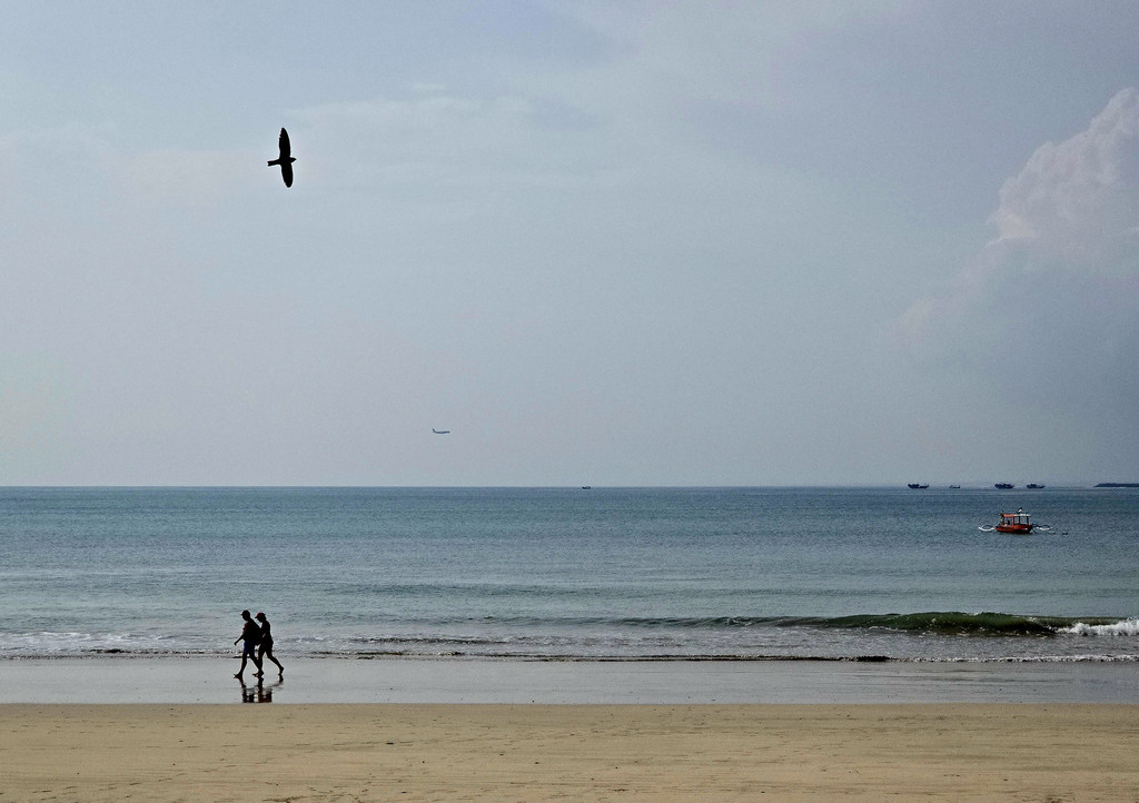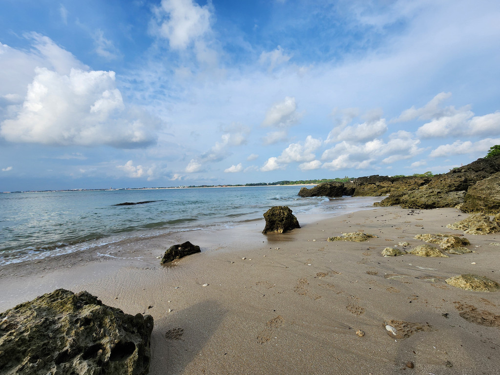 中午再步出金巴兰沙滩,今天是巴厘岛的假期,海边的烧烤餐厅没有营业,反而减少了烧烤的烟火,玩水的游人依旧不少,不过和偌大的沙滩对比起来只是寥寥。