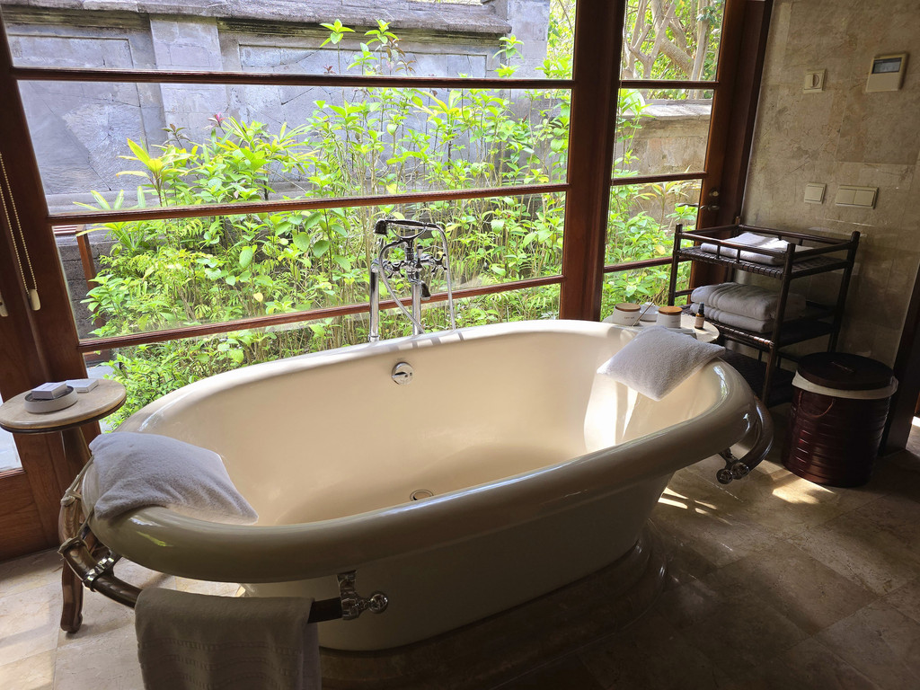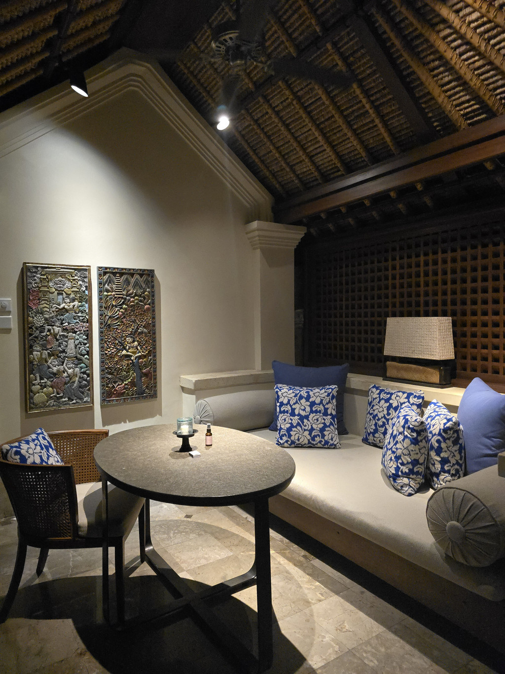 采购完毕,移步到本次行程的第二家酒店Four Seasons Resort BALI AT JIMBARAN BAY。位于Pantai Jimbaran旁边的度假村,沿着沙滩末端旁的小山坡成就层层相间的各式别墅,我们被安排在西边最边缘的位置,完全不会被打扰,行走到另一方向边缘的餐厅Sundara其实也不过十分钟。虽然Check In时,我们并未被惊艳,但是当住入Villa之后才发觉越来越多这里的贴心和用心。防晒乳,防蚊液,檀香,蜡烛,床上的纱帘,床头的插座,私人泳池可以安坐的台阶,乃至浴缸上的枕头,无法一一列举,但是几乎是你想到需要什么就已经在那里,或者你发现居然已经准备在了随手拈来的地方,真的有一种熟悉而舒适的家的感觉。一个下午就在自己的别墅中度过,却依旧还没完全发觉各种小巧思。