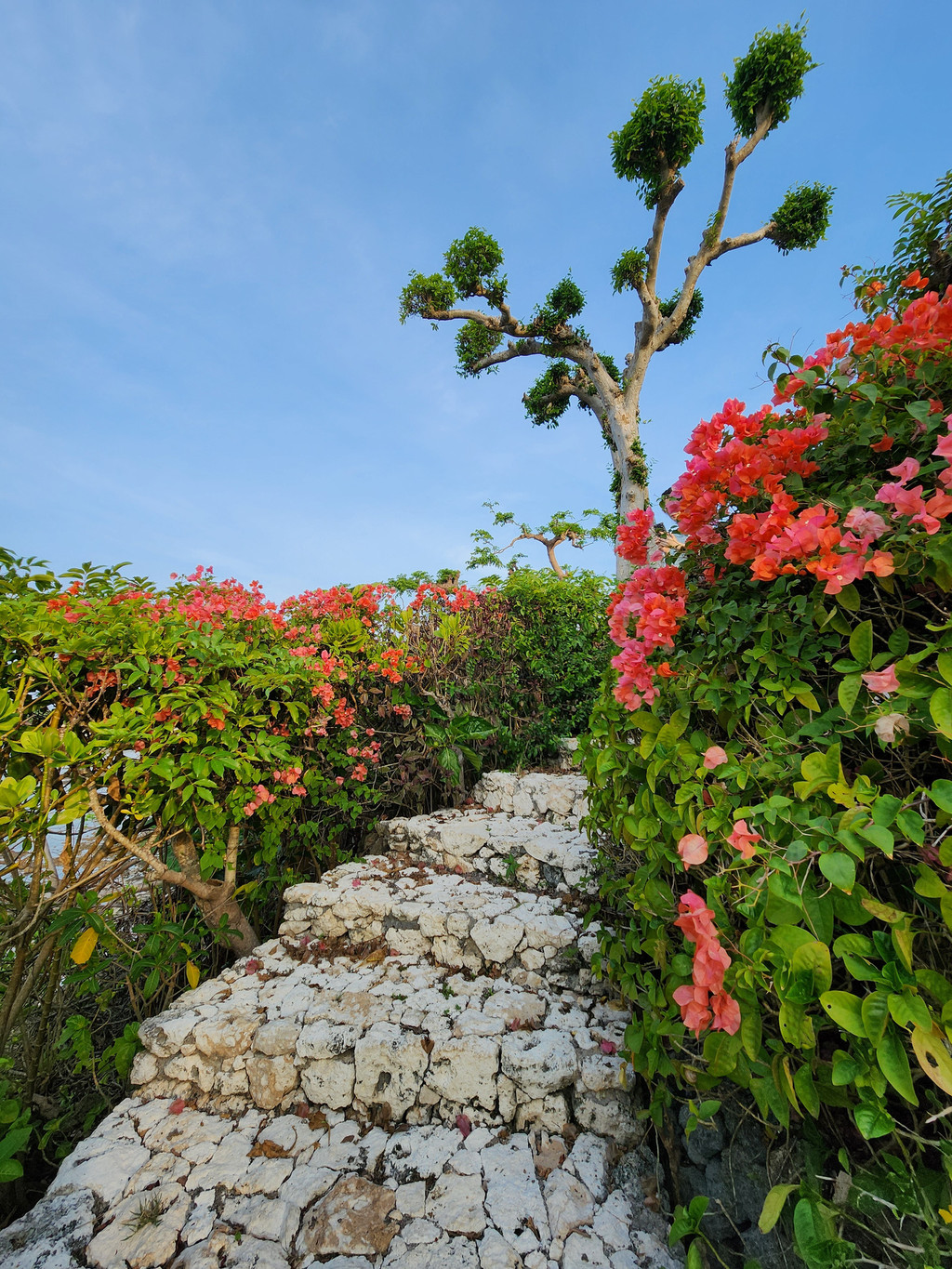 临近傍晚,我们步行横穿整个度假村,不经意处,才会发现不同的美丽,乘坐电瓶车,总会错过很多,只有自己双腿丈量才会发现,特别是临近海滩的小路上。虽然沙滩都是对公众开放的,不过度假村还是利用自然环境私藏了一些位置。道路曲折处,上下错落,就会有不同的景致发生在转角。不时出现的亭子,几乎总有无限风光。小桥和木栈道,又会各自形成不同的美景角度。一路走走看看,拍拍照,流连景色,很容易忘记自己走在三十多度的气温之下。