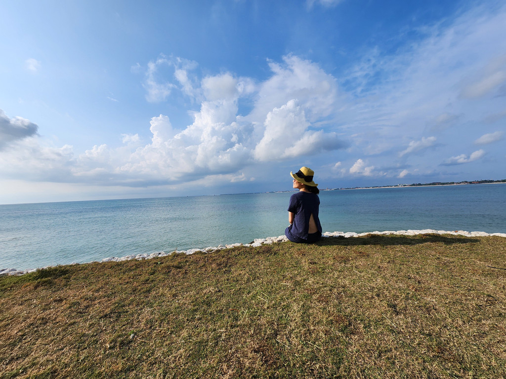 离开美丽而略显原始,或者说相对保留比较多自然景观的珀尼达岛前,在码头上,还是看到游人开始散去,渐渐回归安静的岛屿和海水,安静而多种变化的蓝色,清澈的海水连接着淡黄色的沙滩,蓝蓝的天和些许的白云映衬着更蓝色的海水。回程路上也遇上了晚高峰,即便导游司机已经走了收费路段,还是花了一个小时才走过20公里的车程。