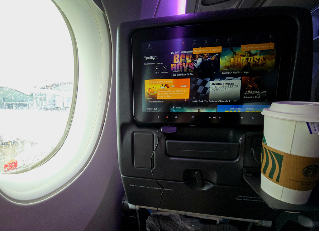 第一天清晨,我们到达值机柜台较晚,排队的位置空无一人,我们也一时恍惚,以为走错位置了,所幸已经在线值机,只剩下托运行李和出票,一切都顺利和便捷,值机柜台的职员还热心的告诉我们,登机口有点距离。我们等待安检的时候,有乘客是真的跑步进场的,据说只剩下30分钟就起飞了。当我们到达登机口时,这时的香港机场下起了雨,航班也顺应有所延误,不过最终在机长平稳和熟练的驾驶还是早于计划时间降落在新加坡机场。香港的航站楼几乎全部是国泰航空的飞机包围下,一架新加坡航空的飞机显得略微不协调。A350作为相对新的机型,配合新航的服务和配套,还是算符合预期。经济舱位置的前后距离和座位的宽度都算舒适,而且可以放置小物件的地方也不少,机上娱乐系统,也是一如既往地好,不过现在各大航司都在这方面更新了,新航已经没有以往那么突出的表现了。机上Wi-Fi也已经是越来越多航司的标配了,特别是卫星通信越来越普遍的现在,新航对于注册会员,机上Wi-Fi是免费的无限制连接。第一程飞新加坡,只是提供早餐,在线值机期间提前24小时可以选择很多不同需求的餐食,选好之后,登机后会被问及和标记,在派餐时间,会被提前送达,不过饮品还是会在集中派餐的时候才会提供,感觉新航的餐食水平有所下降,饮品似乎选择也变得普通。