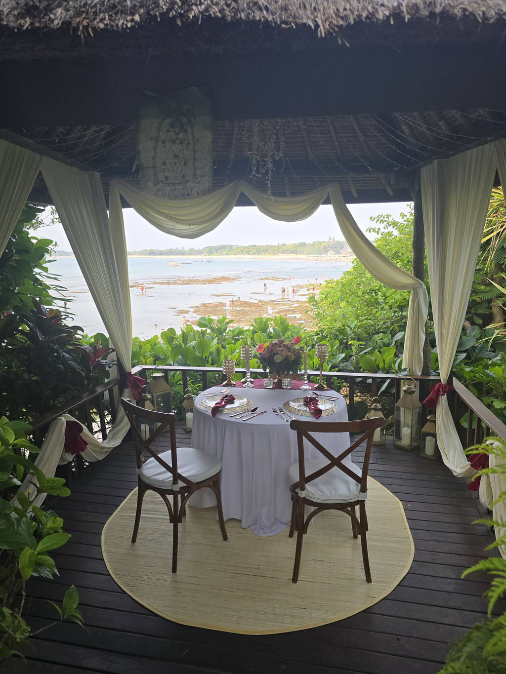 晚上回到酒店,再次去到Sundara前的无边泳池旁准备吹吹海风,但是今天风有点微弱,无法吹散这座热带海岛海边的热量,职员也因为忙于餐厅的服务工作而疏忽了泳池边的客人,今天的餐厅几乎满座了。