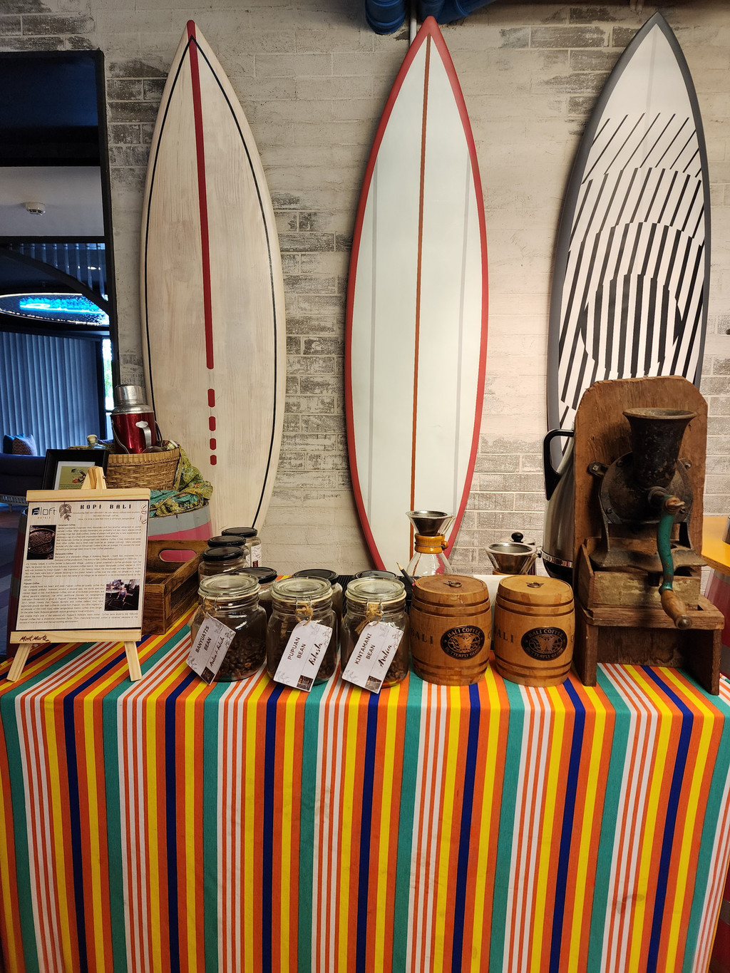 选择中午离开的航班,可以睡上一个整觉,安心享用酒店的自助早餐,虽然感觉上浪费了大半天在飞行。可能由于临近国内国庆长假,今天明显在餐厅内遇到了更多的国人,而且今天用餐的客人也比较多,几乎坐满了。酒店的自助早餐每天还是有变化的,今天有专人现做的手冲咖啡,还有三款巴厘岛当地的咖啡豆可以尝试,瞬间拉升了早餐的高级感。菜品也有一些变化,炸香蕉很甜,还有蒸煮的五谷,枝豆很新鲜,只是调味略淡。