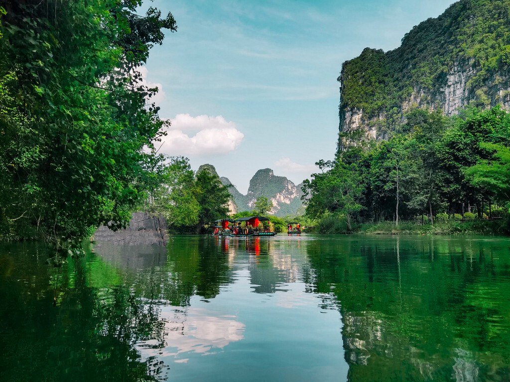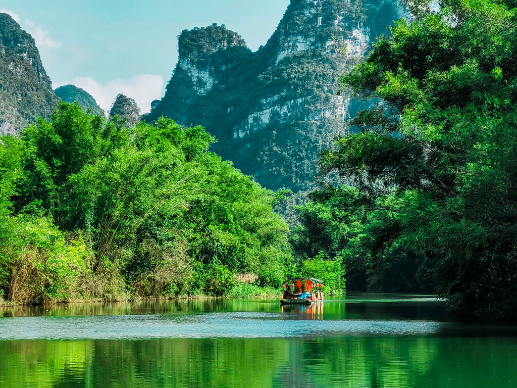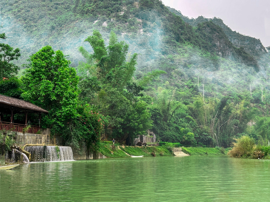 与越南山水相望,有着“中越边境长城”之称的广西段,连绵起伏的喀斯特山貌与众多的河流交相辉映,富有特色的地理形状和自然风光,独特的多民族风土人情,隔河相望、新奇的边陲异国风情,架构起一条秀丽迷人的边关山水长廊风光大道。