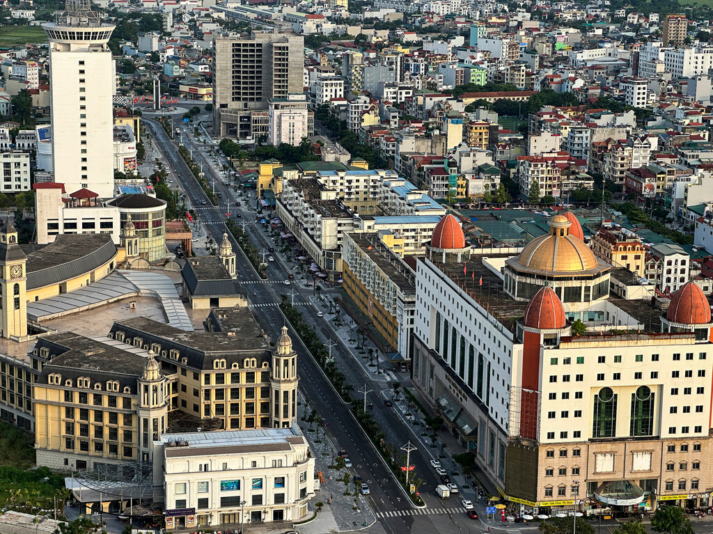 没有签证也可以登上口岸附近的大酒店观光平台,去看看河对岸的芒街口岸和越南。