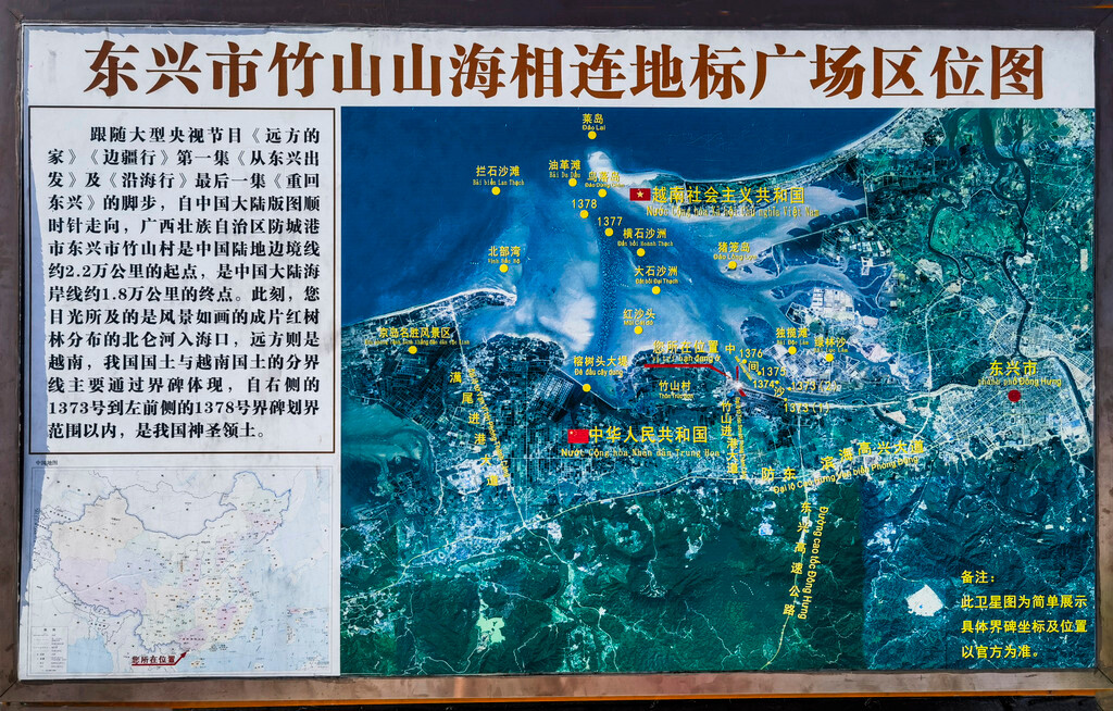 清光绪十三年,从竹山到沿北仑河至垌中勘定中越国界立下的数十块界碑,确定了中越领土的分界线,也就有了竹山村内的大清国第一界碑。