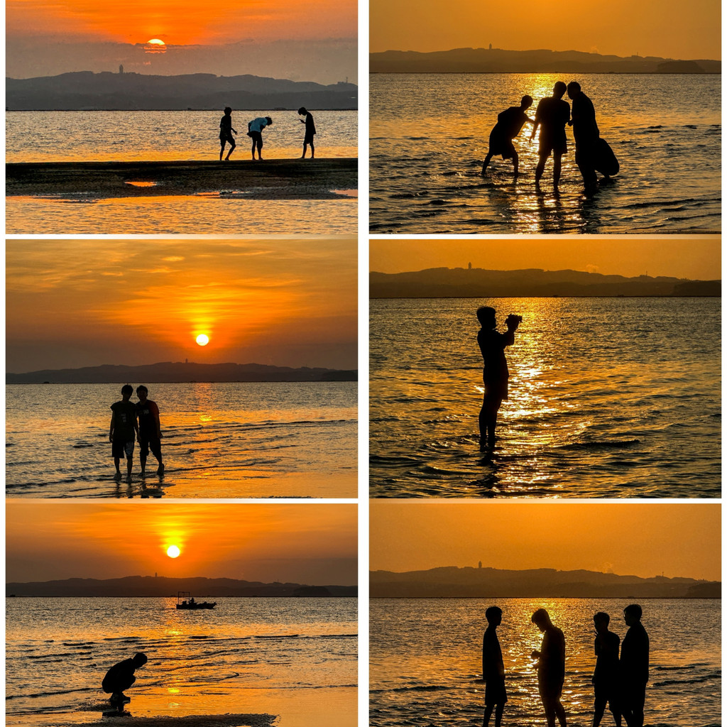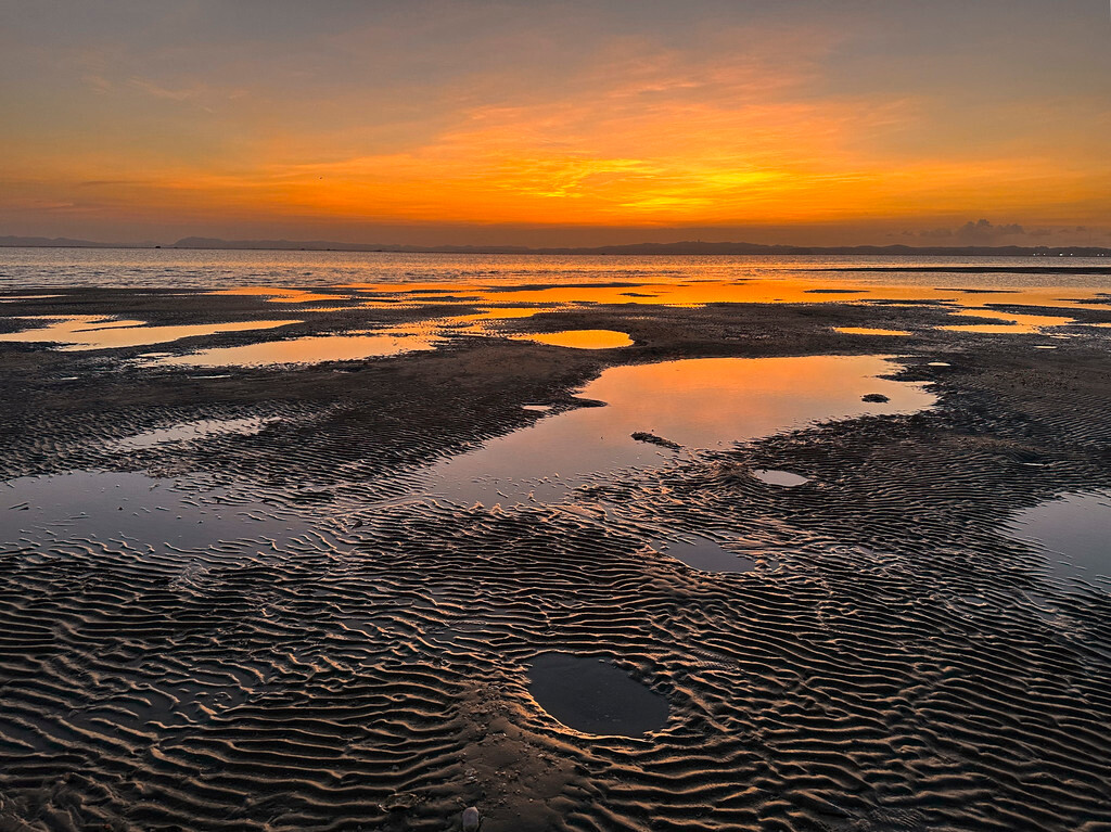 当太阳升起离开海面的时候,红色到金色的霞光映满海面和天空,万尾的金滩就真的成了金滩,来得那么的浓烈和惊艳。