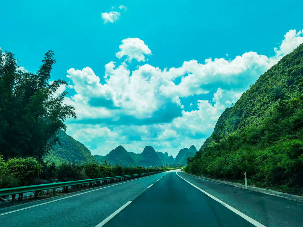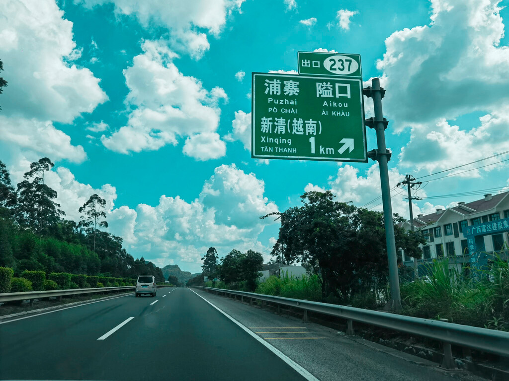 离开云南富宁,很快进入广西境内。穿行于桂西南喀斯特地貌,百大特大桥飞架千山,合那与银百高速交会立交似莲花盛开靖西山水间,车行于道路云端,俯瞰连绵不断的山川和散落其间的村庄,美丽的田园风光和边陲小村景观让我目不暇接,最美边关风景线一直伴我长行。