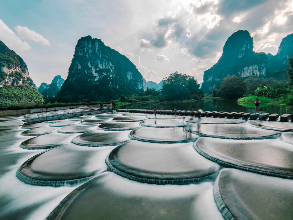 鳞次栉比的鱼鳞坝,潺潺漫过的层叠溪水,碧蓝通透的静谧水潭,错落有致的俊秀山峰,灵动清爽了嬉戏欢快的游人。