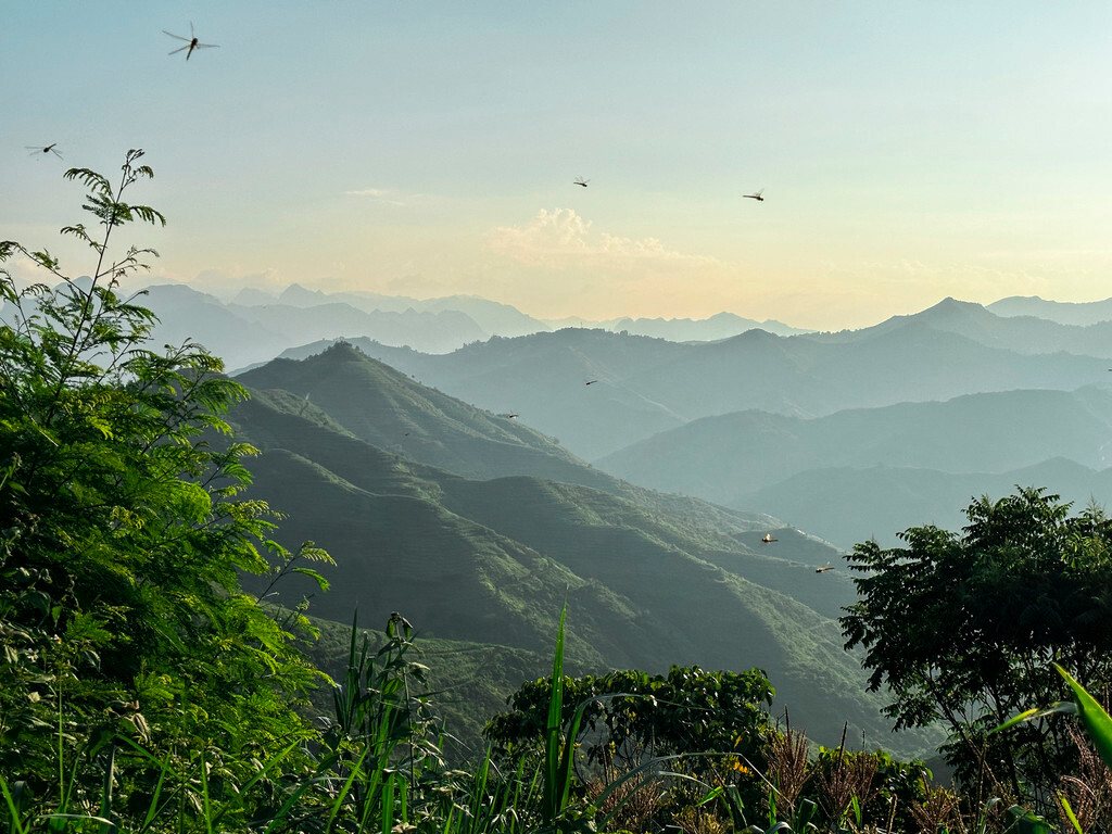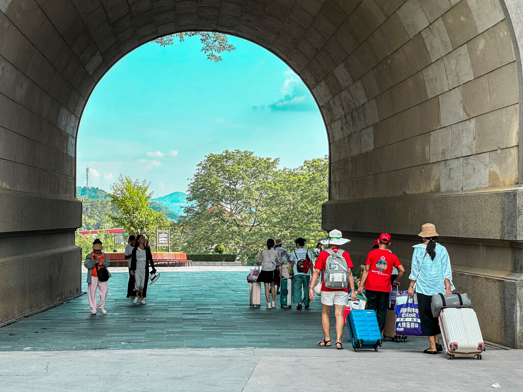 再上者阴山,昔日硝烟早已散去。新建的主峰拱门后山顶上界碑赫然屹立,远眺越南方向,蓝天白云、山峰叠嶂,和平生活来之不易。