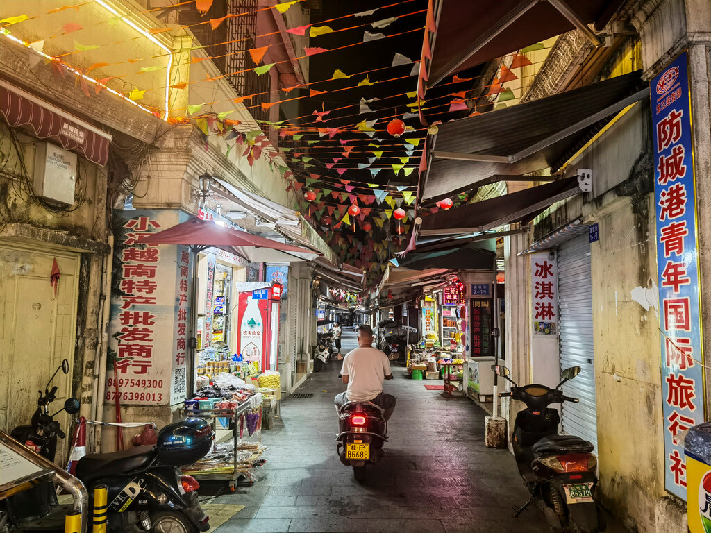 东兴口岸旁的越南风情街,不仅在建筑上和越南如出一辙,还有各种越南零食和服饰,不妨选购一些。买的时候一定要看一下是否是越南生产的,谨防假冒产品。