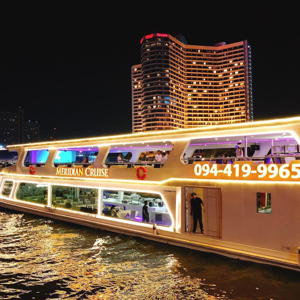 白天忙碌的行程让你觉得有些疲惫吗?不妨慢下脚步,在夜晚的时候边享受美食边欣赏美丽的风景吧!乘坐游轮沿着湄南河航行,在郑王庙和大皇宫的陪伴下,享受丰富的泰式及国际自助餐。这里提供琳琅满目的美食任你选择,一定会让你大饱口福。边大快朵颐的同时,还可以欣赏河畔美景,享受静谧月光下的夜晚。除此之外,这项导览还包括了娱乐表演节目,让你度过精彩的两小时。
