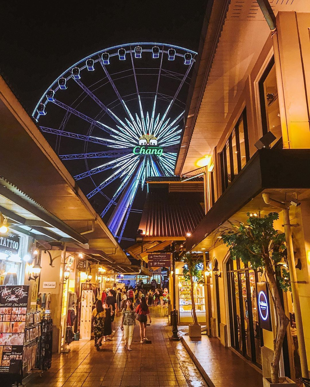 这是很多人推荐来到曼谷必逛的绝美夜市之一!无论是要购买本土品牌产品、纪念品以及品尝当地美食,曼谷河滨码头夜市都是个好选择。它是个属于欧美融合泰式文创风的现代商圈,在这里有很多的服饰小店、泰国特有的水果与花香的水果皂、洗面皂、身体乳、洗发精等等,是当地人与游客们的必去之处。除了逛街血拼外,这里还有一个巨型摩天轮。你可以选择搭乘摩天轮从高处欣赏曼谷昭披耶河夜景,在星空下享受一个浪漫的夜晚。若是想要看表演,这里也有泰拳秀和人妖秀,推荐喜欢临场感的人观看。