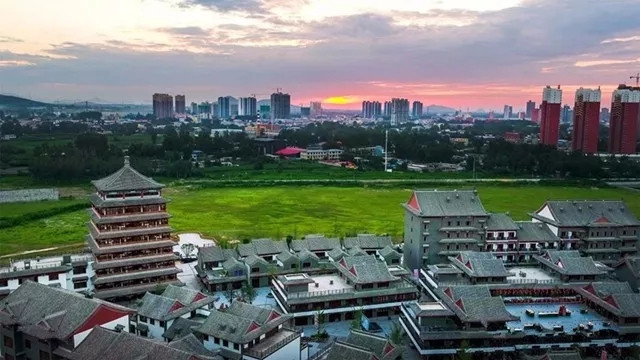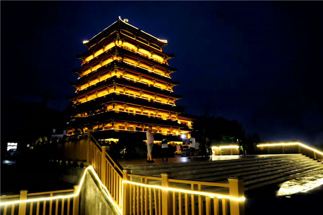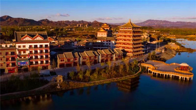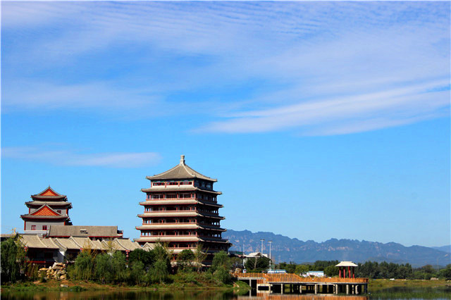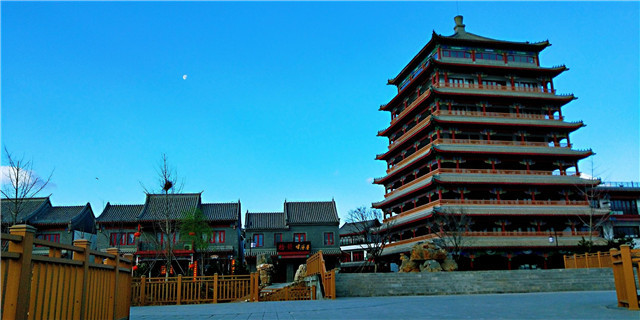 燕都古城八拜楼位于河北省易县的易水河畔,始建于2014年3月,竣工于2017年6月,总高35.832米,建筑面积3381.34平米,147级台阶,共八层。