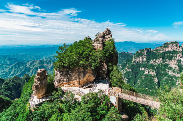 白石山位于八百里巍巍太行的最北端,是太行之首,也是最值得称道的奇峰。三顶、六台、九谷、八十一峰间有着数不尽的风景。崖耸云天、峰石彩林、佛光云海间间还有着21℃的夏天清凉。