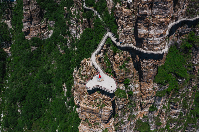 乘大巴车上山-韭菜园-小桥流水-韭菜园索道下站-望亭台-绝壁长廊-仙人晒靴-情人桥-自然角落咖啡厅-三洞天-太行之神-飞云口索道-飞云口-山盟台-双雄天空之镜-双雄守山-八戒娶妻-太公钓鱼