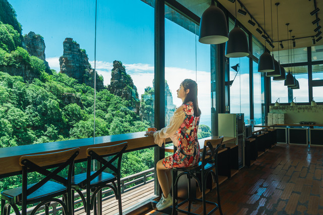 自然角落咖啡厅,是一处悬空式咖啡平台,白石山的网红打卡点。在观观景平台上喝咖啡、品茗茶、观奇峰、赏云海,浪漫的情调也赋予了白石山之行不一样的味道。
