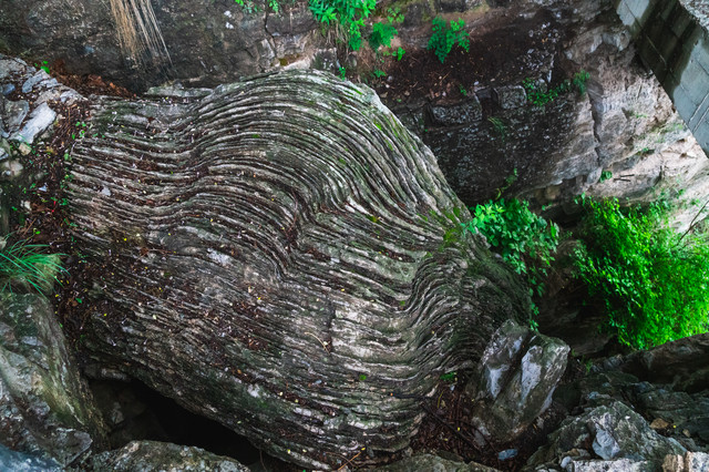 万卷天书本是一块垮塌的含波状叠层石的巨砾,其中波状叠层石因成分差悍匪而风化程度不同,呈现犹如巨厚书页的独特景观,这是一本打不开的无字天书,也记录破解地质变迁的密码。