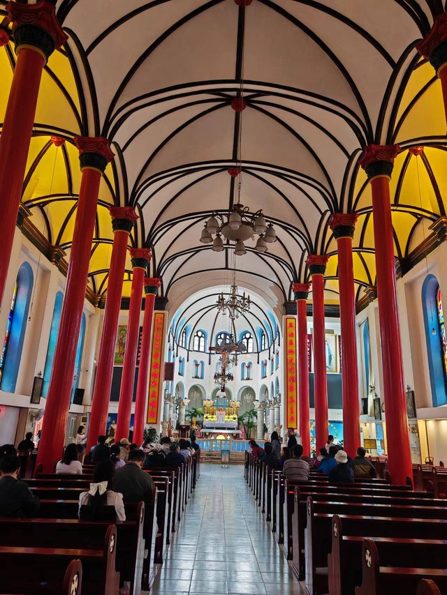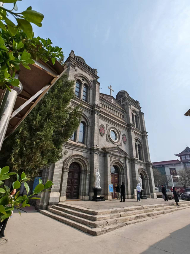 保定天主教堂位于保定市中心,与古莲花池、直隶总督署博物馆相邻,保定天主教的主教区,在华北地区具有一定影响力。教堂是典型的哥特式建筑,尖尖的塔顶,通体由大石砌成,外雕精美,外观庄重而大气,左右两边有神像,给人一种肃穆庄重、古朴沧桑之感,拾级而上,教堂内部干净,两边琉璃窗户上绘有《圣经》故事,一种心灵上的平静油然而生。教堂历史悠久,如今有百余年历史了,免费对外开放。