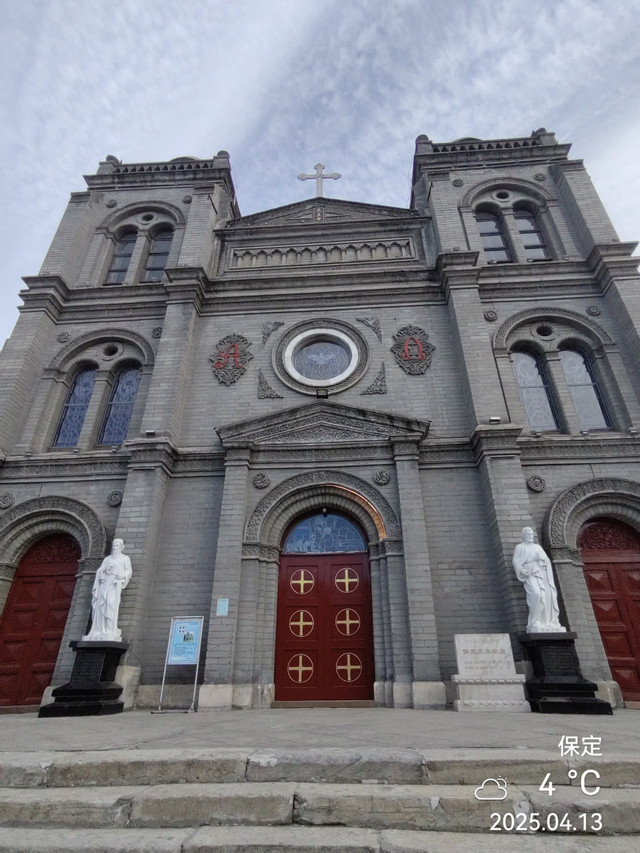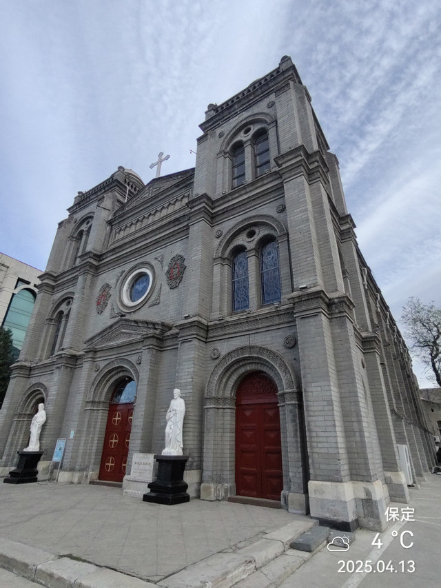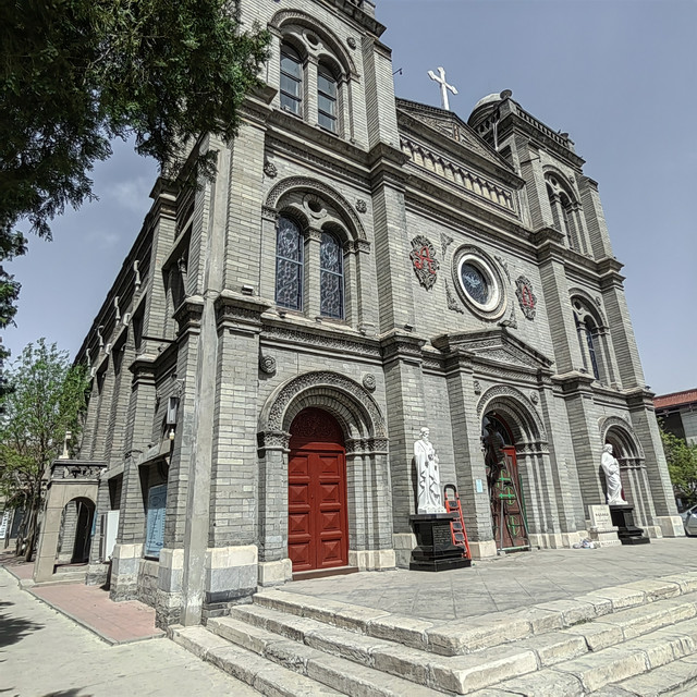 保定市天主堂位于裕华西路245号,始建于光绪二十四年(公元1901年),扩建于清宣统三年(公元1910年),名“圣伯多实禄堂”,是由法籍传教士所建。