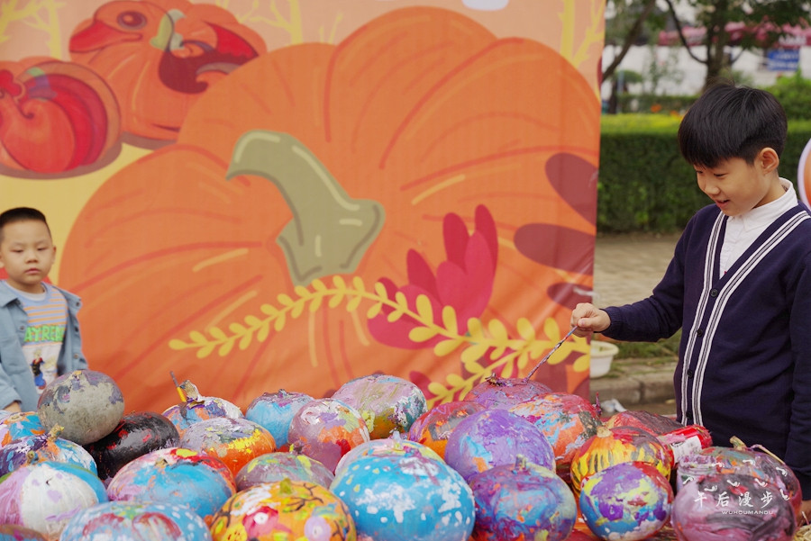 在亲子互动区、为了让孩子走进大自然、接近大自然、触摸大自然、了解大自然。孩子们在家长的指导下学着掰玉米,让孩子体验劳动的辛苦和快乐,在感受秋天的美景的同时也真正体会到“谁知盘中餐粒粒皆辛苦”的含义。在南瓜涂鸦上画上自己喜欢的图案及蔬菜跳棋等等..增进亲子间的情感深受家长和孩子的欢迎。