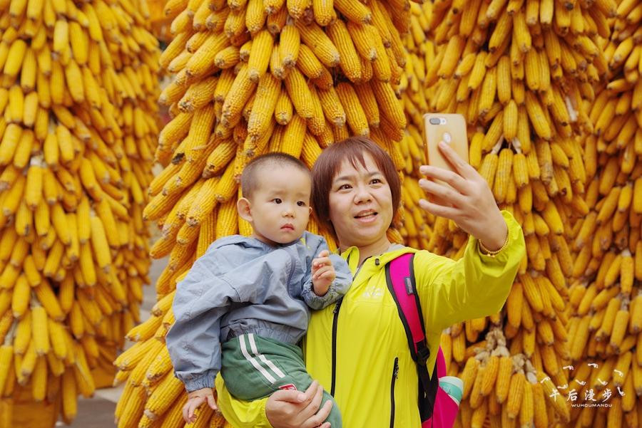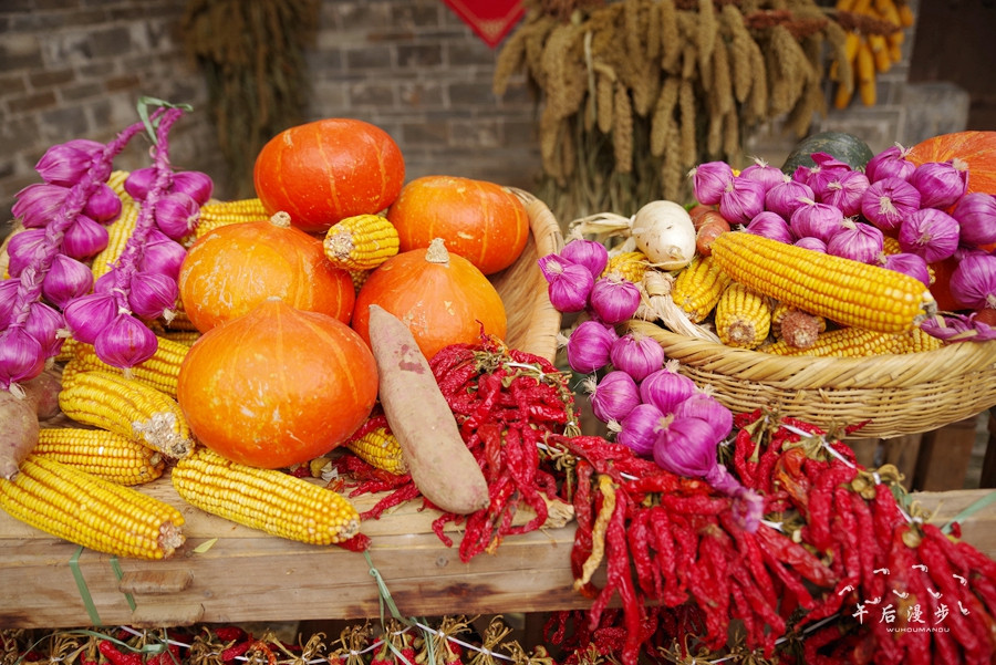 再看西府老街上来往的游客络绎不绝!抬头看悬挂着金黄色玉米和大红色辣椒,老街特色农产品展销会这边种植的“瓜果飘香庆丰收 金色大道迎小康”金瓜长廊和各种水果摆放的造型是一片丰收迹象,品种繁多的农产品和形形色色的人群交相呼应。今年的农民丰收节,三秦父老收获的不仅仅是农业丰收的喜悦和幸福,更有全面脱贫、圆梦小康的激情与豪迈。