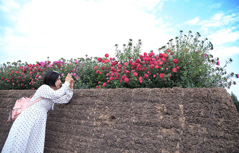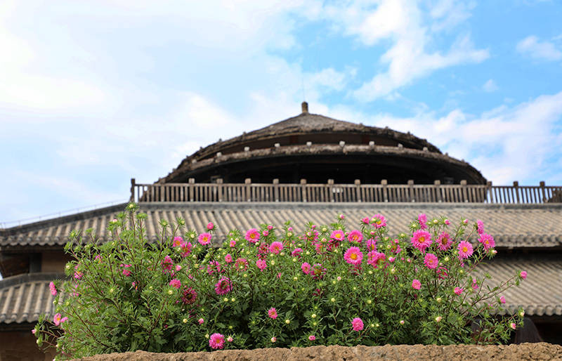 我们到的时候已经是下午3点多了,也许是因为周内和半下午的原因,人不是太多,中午灰蒙蒙的天气在这时竟现出了蓝天白云,为周原恢宏的建筑增添了别样的美好,简洁古朴的土坯房茅草屋,让看惯了城里高楼大厦的我们眼前一亮,一种返璞归真的感觉油然而生。土基上的矢车菊开得真好,黄色的土地与娇艳的花朵,在这里相映成趣,似乎一切都刚刚好,时光好像返流了一样,让我们在这份美好中静阅大周之礼。