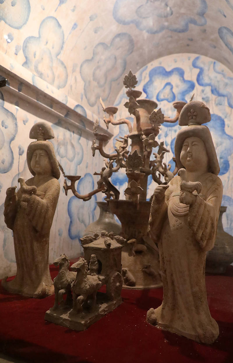 两座地宫均有壁画、胡人马乐俑、三彩陶马俑、侍女立俑、乐伎舞俑等。姿态各异,颇具动感,值得细品慢赏。如果你来西府老街,不妨多走几步,去参观一下大唐秦王陵,在历史的烟尘中,让自己慢下来,细品悠闲之趣。