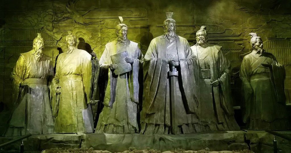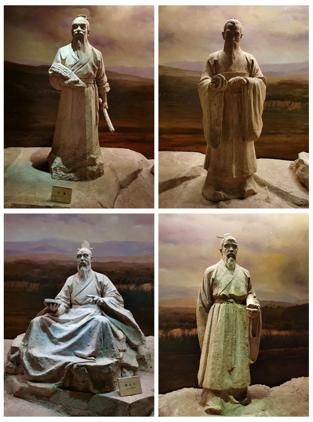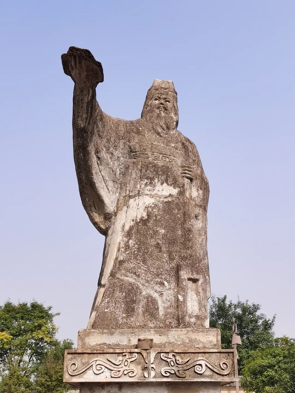 (入口石道两侧列有古代贤臣良将雕塑,尽头中央是姜太公)