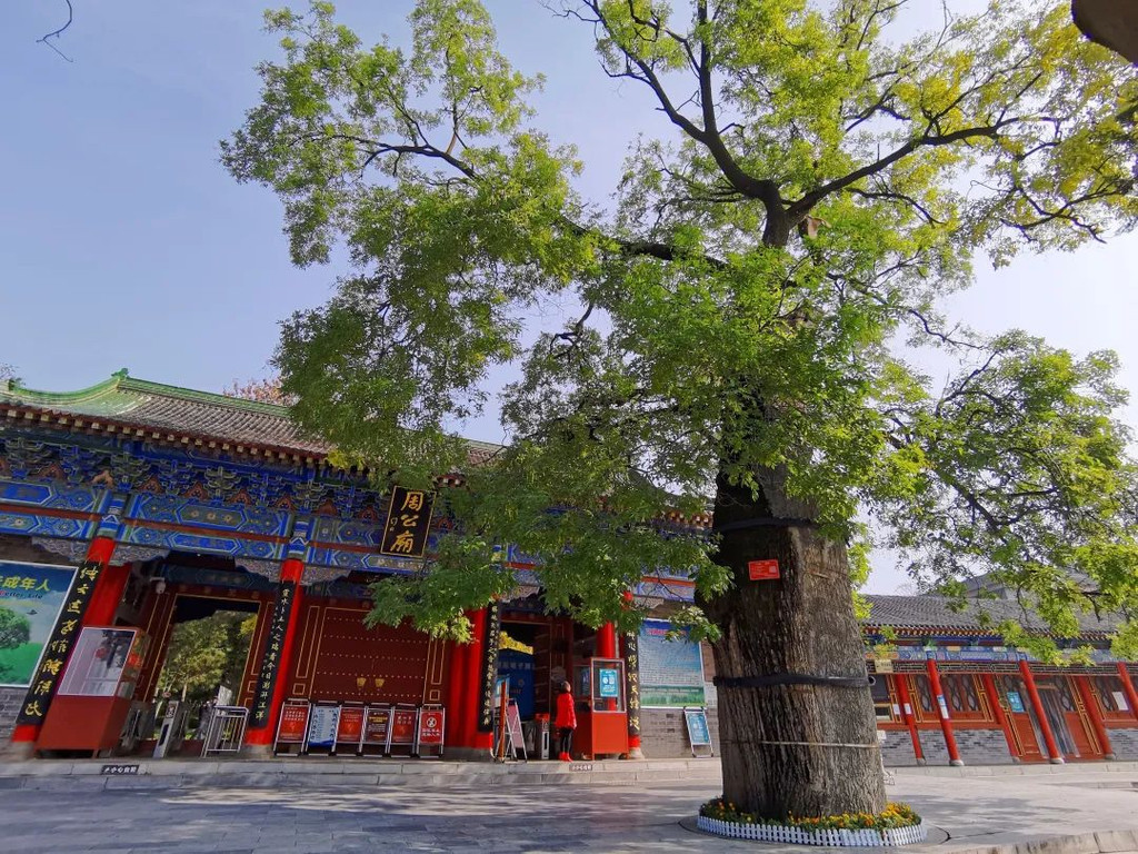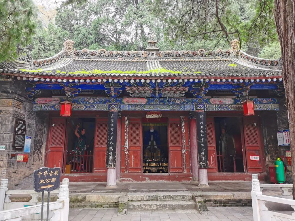 太公庙前有四棵参天古柏,植于1300多年前,至今苍翠欲滴,龙钟多姿。